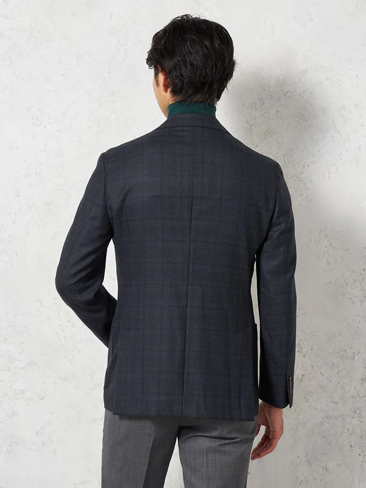 【ウール100%】ジャケット 2つボタン イタリア ディプライ社製生地 チェック ネイビー RUCKEN BACCHAR 秋冬