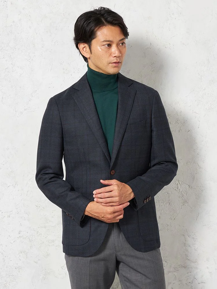 • 【ウール100%】ジャケット 2つボタン イタリア ディプライ社製生地 チェック ネイビー RUCKEN BACCHAR 秋冬 1278775735