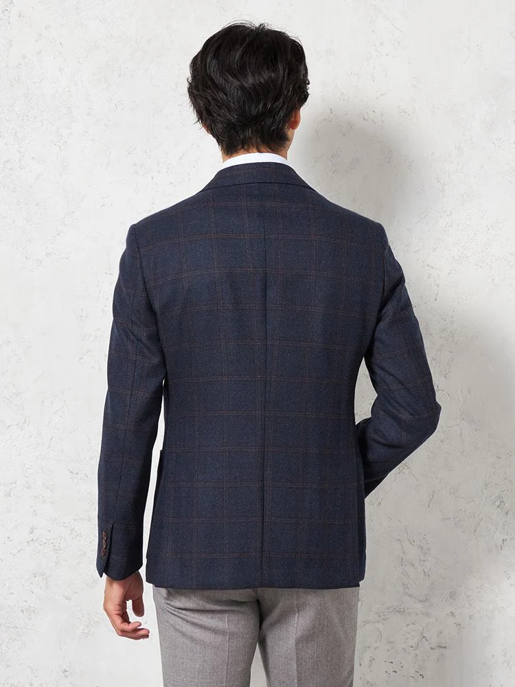 【ウール100%】ジャケット 2つボタン【REDA】イタリアインポート素材 軽量仕立て チェック ネイビー RUCKEN BACCHAR 秋冬