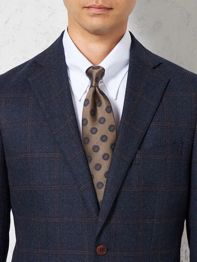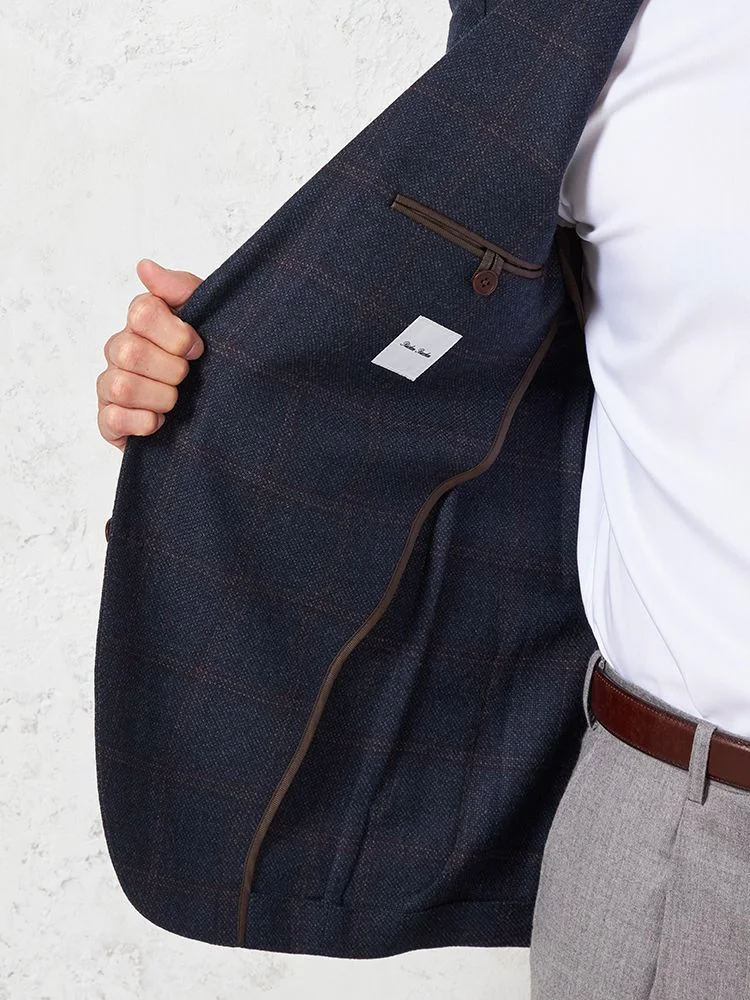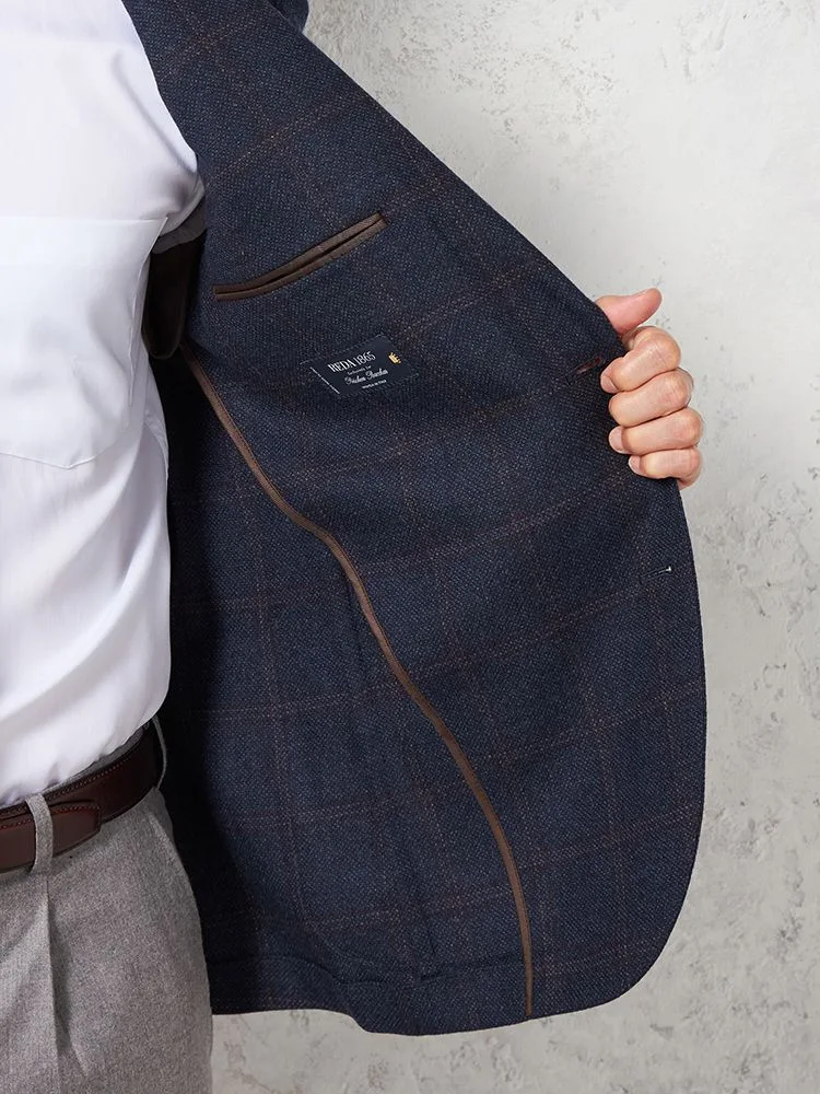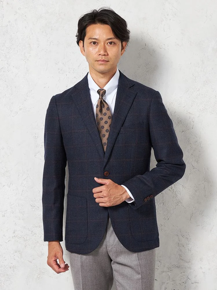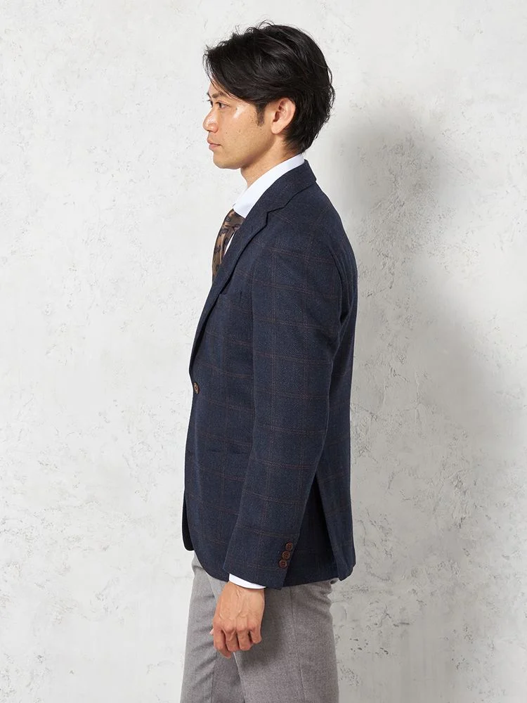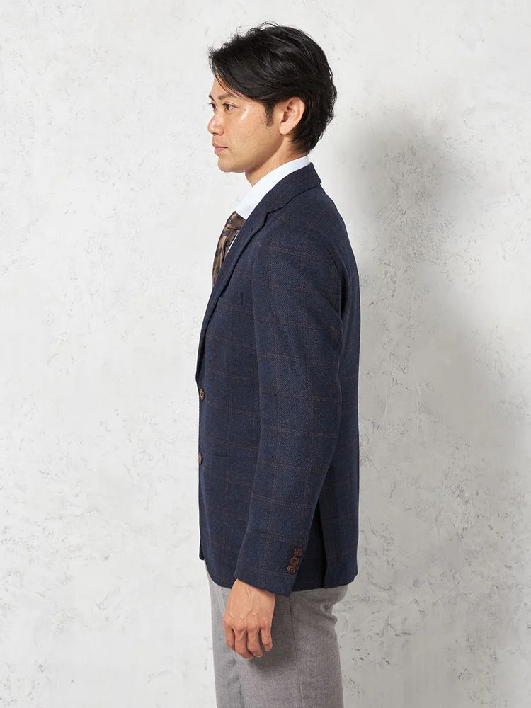 ネイビーを基調としたチェック柄2つボタンデザイン。