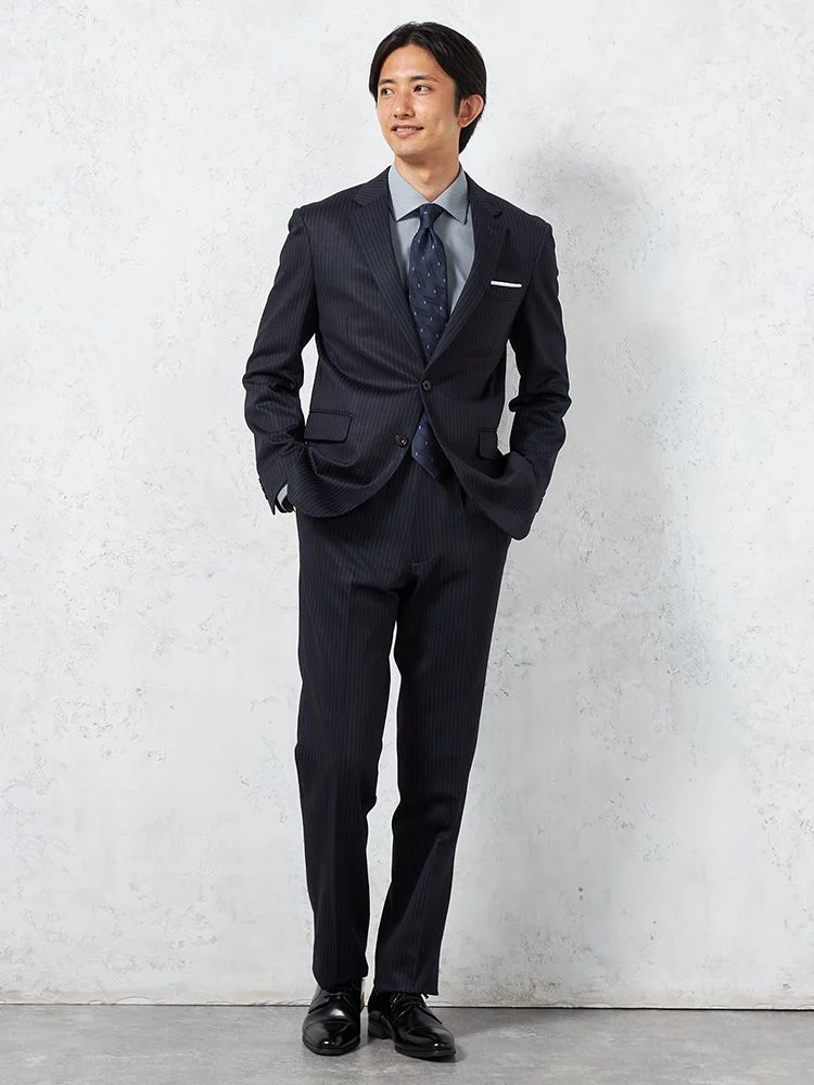 【即納】【WEB限定】スーツ2つボタンネイビーシャドウストライプ上下ウォッシャブル3シーズン対応