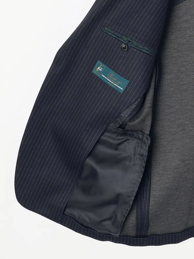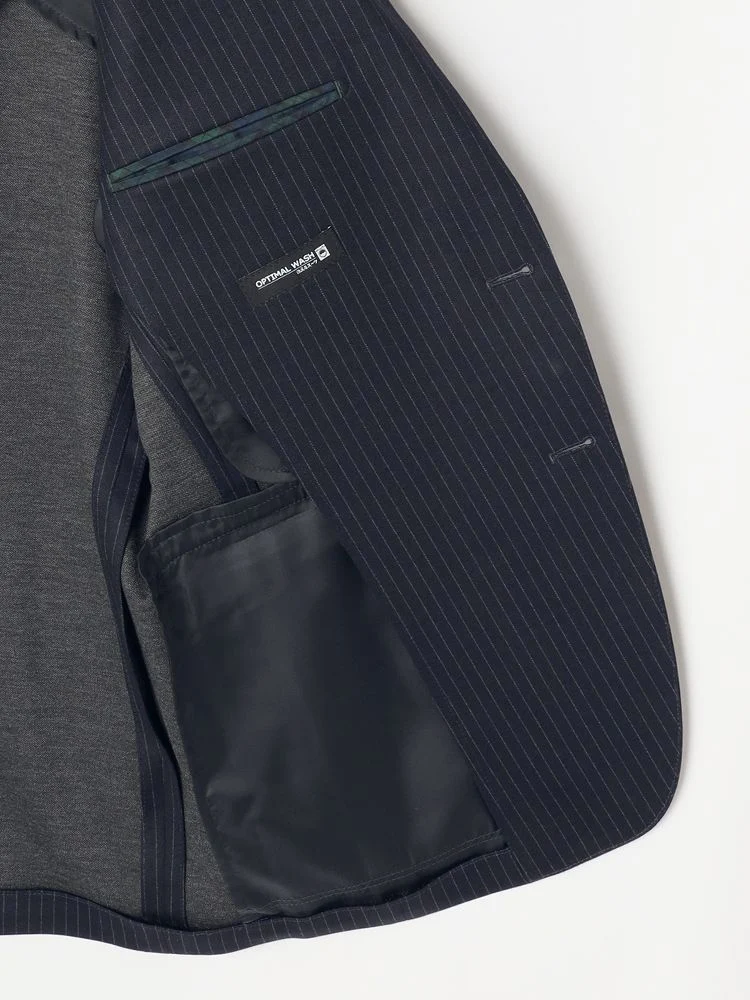 【上下ウォッシャブル】スーツ 2つボタン 抗ピリング加工 ストレッチ ストライプ ネイビー【i-Suit-アイスーツ-】秋冬