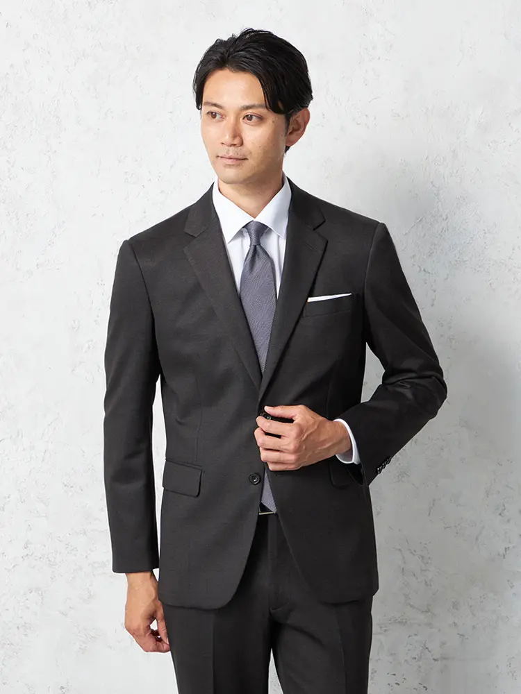 【上下ウォッシャブル】スーツ2つボタン軽量表地ストレッチ素材ワンタック織柄無地nero【i-Suit-アイスーツ-】春夏【スリムデザイン】