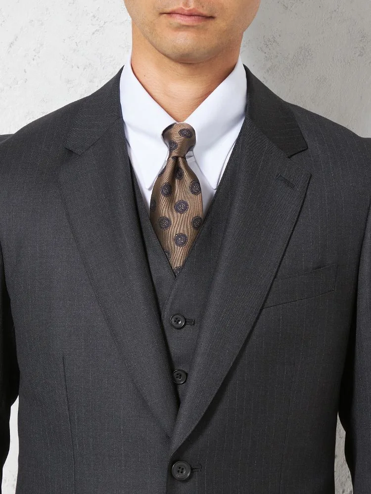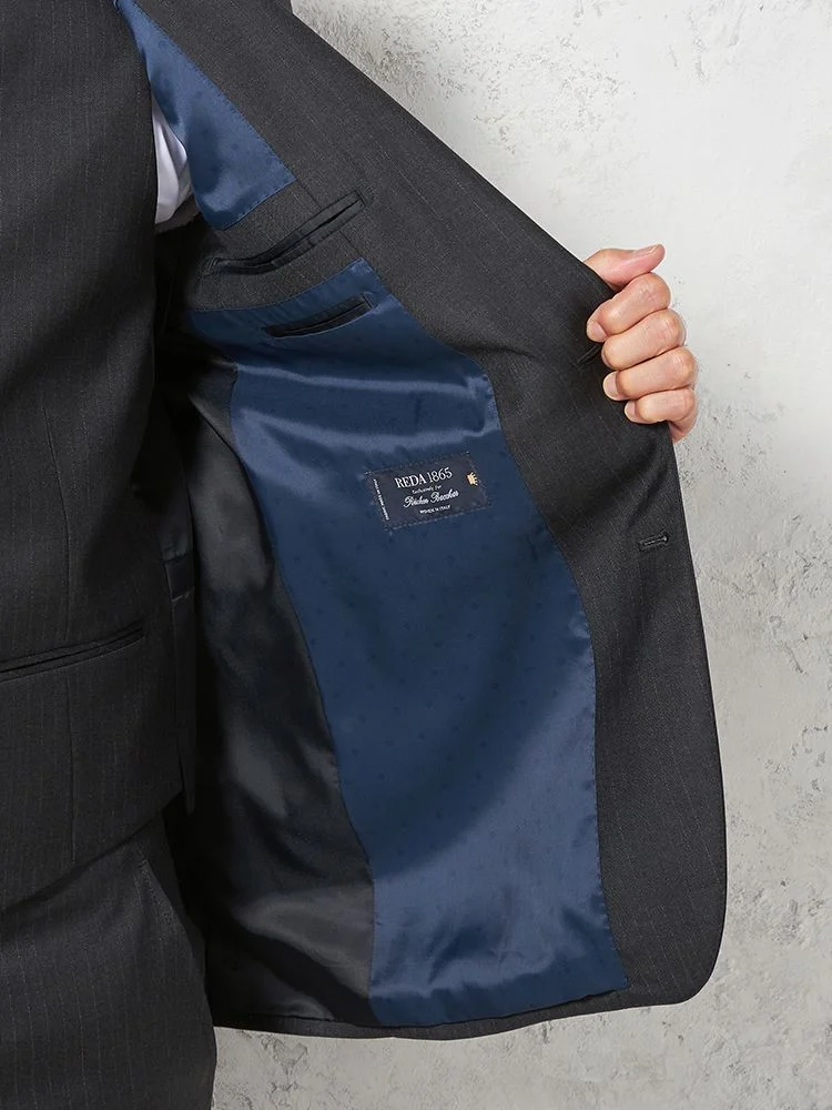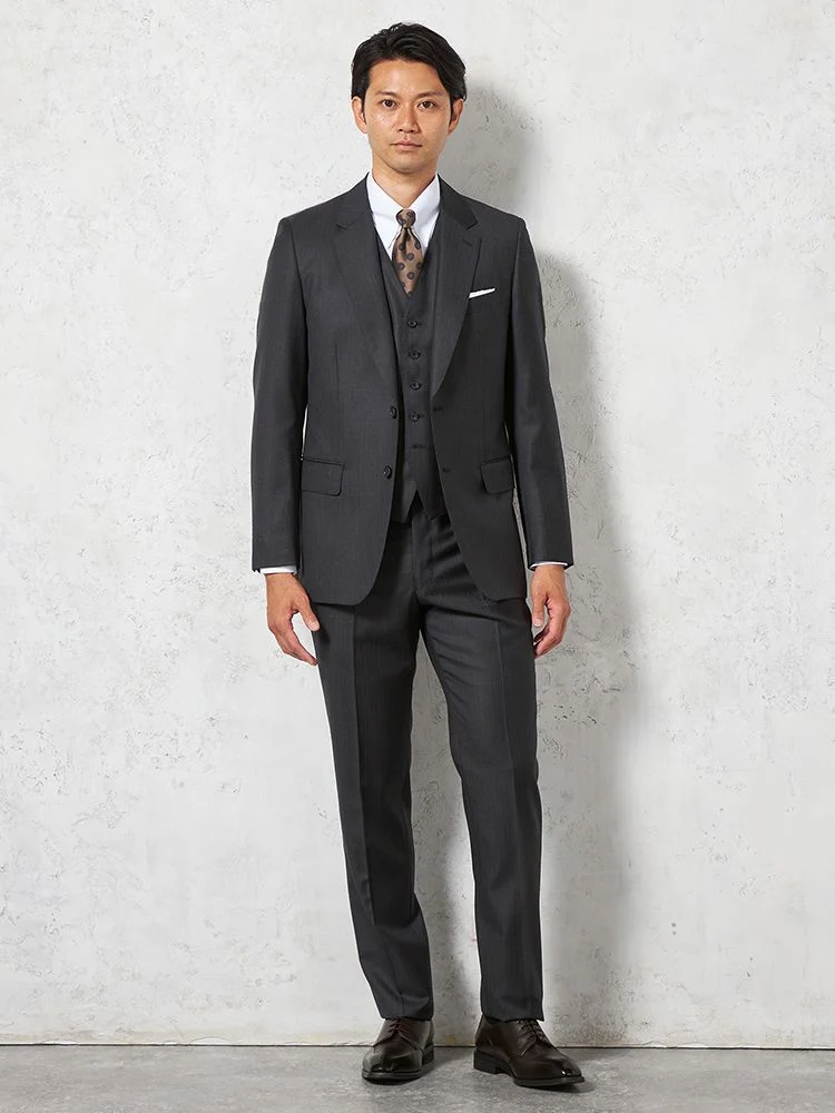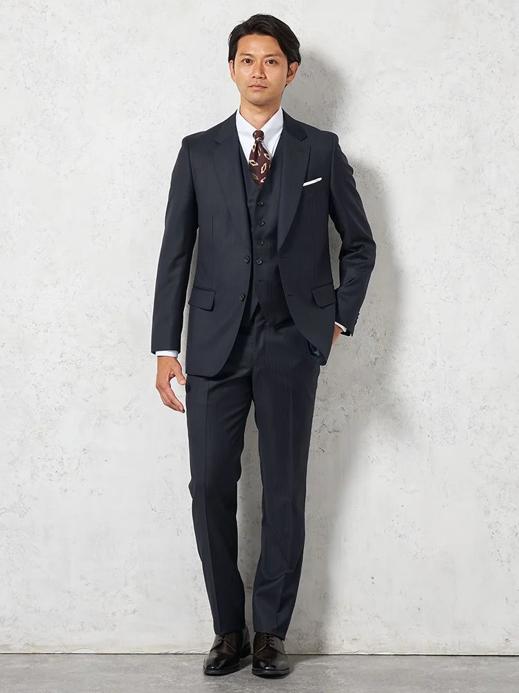 【ウール100%】スリーピーススーツ2つボタン【REDA社製生地】ピンヘッドリッケンバッカー