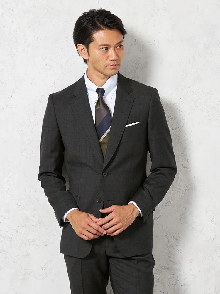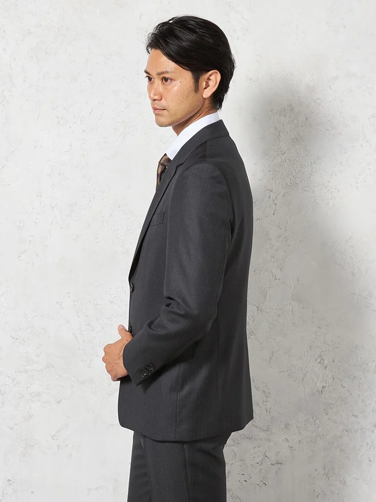 【即納】スーツ2つボタン【WEB限定】上下ウォッシャブルM.グレー小柄3シーズン対応