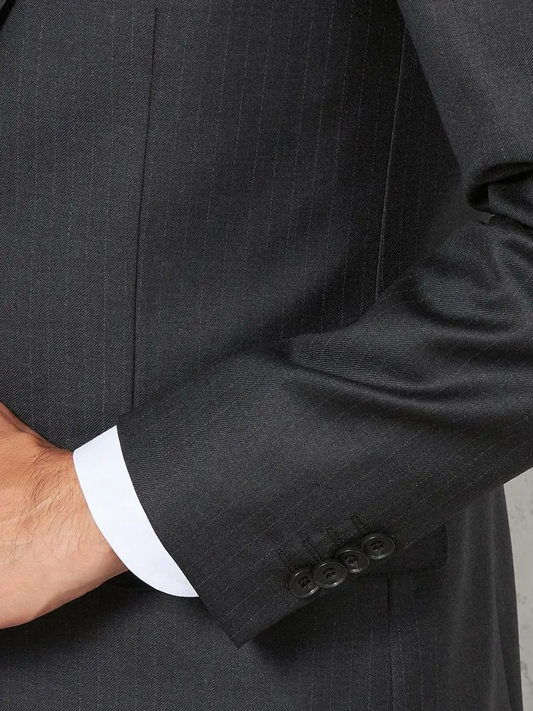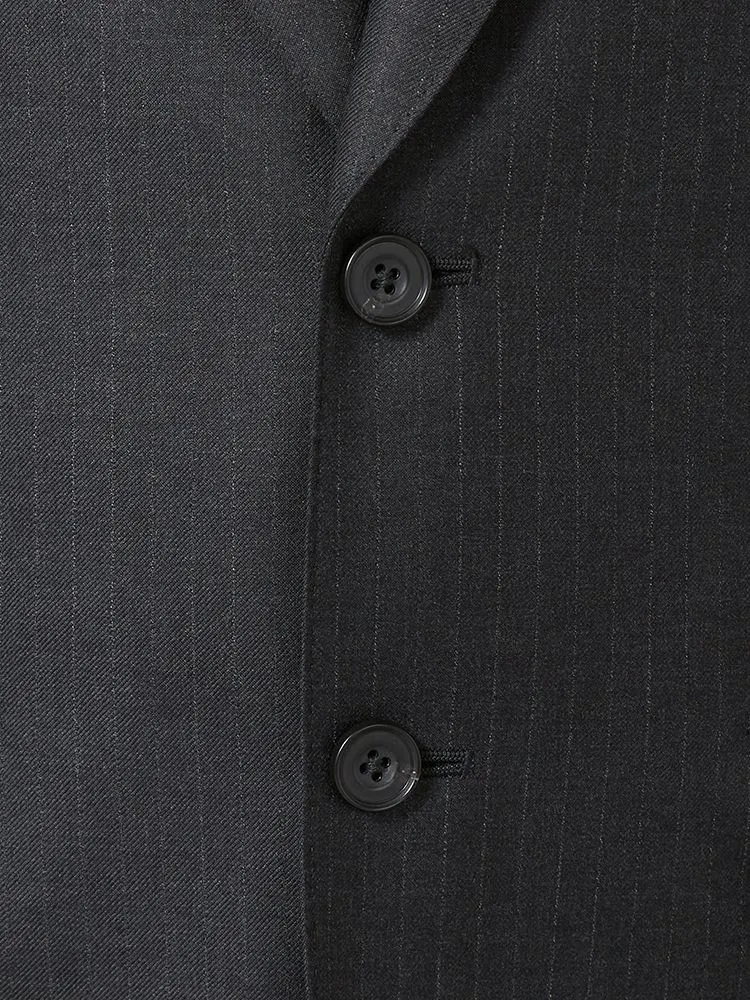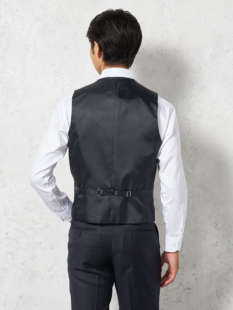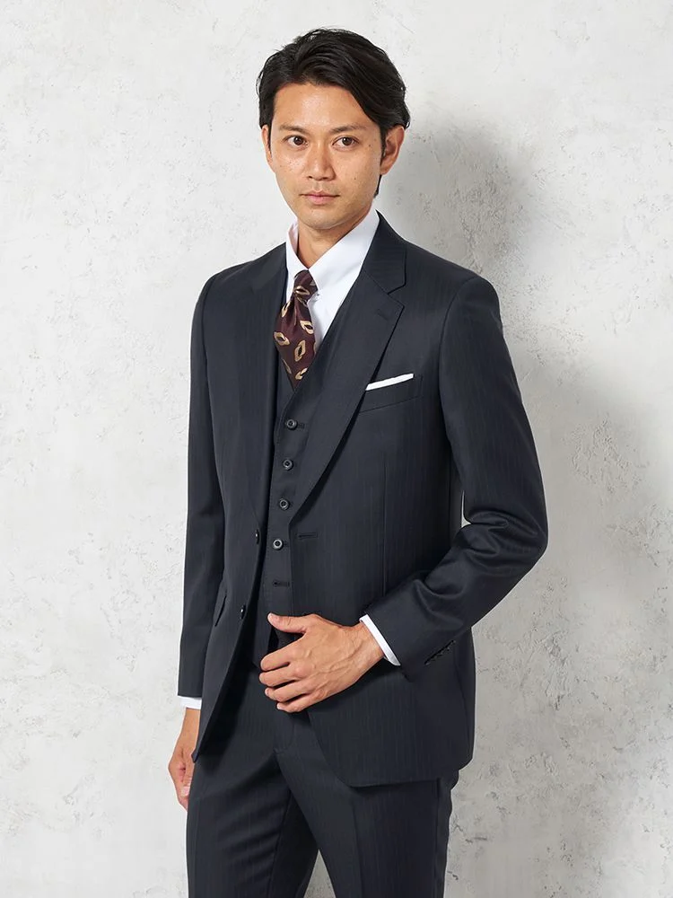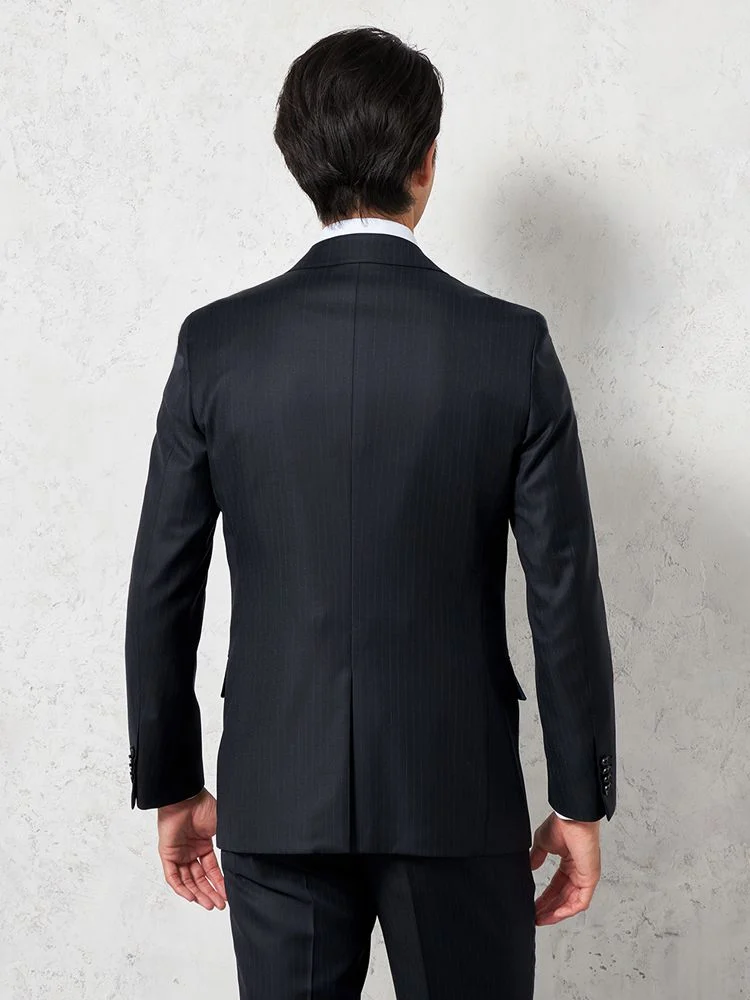【即納】スリーピーススーツ2つボタン【WEB限定】上下ウォッシャブルブラックシャドウストライプ3シーズン対応