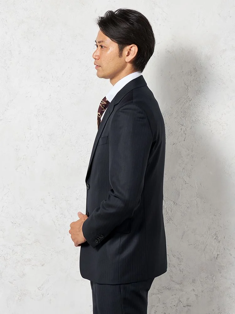 【即納】スーツ2つボタン【WEB限定】上下ウォッシャブルネイビーストライプ