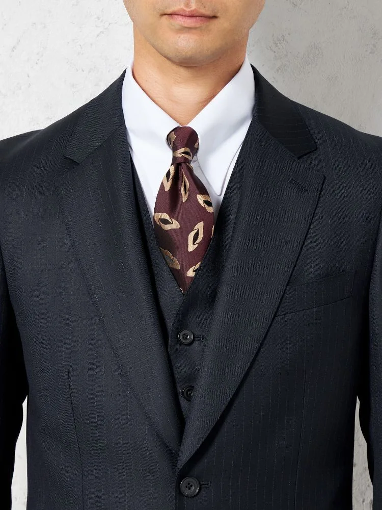 光沢感あるトレンドカラーを採用したスリーピーススーツです。