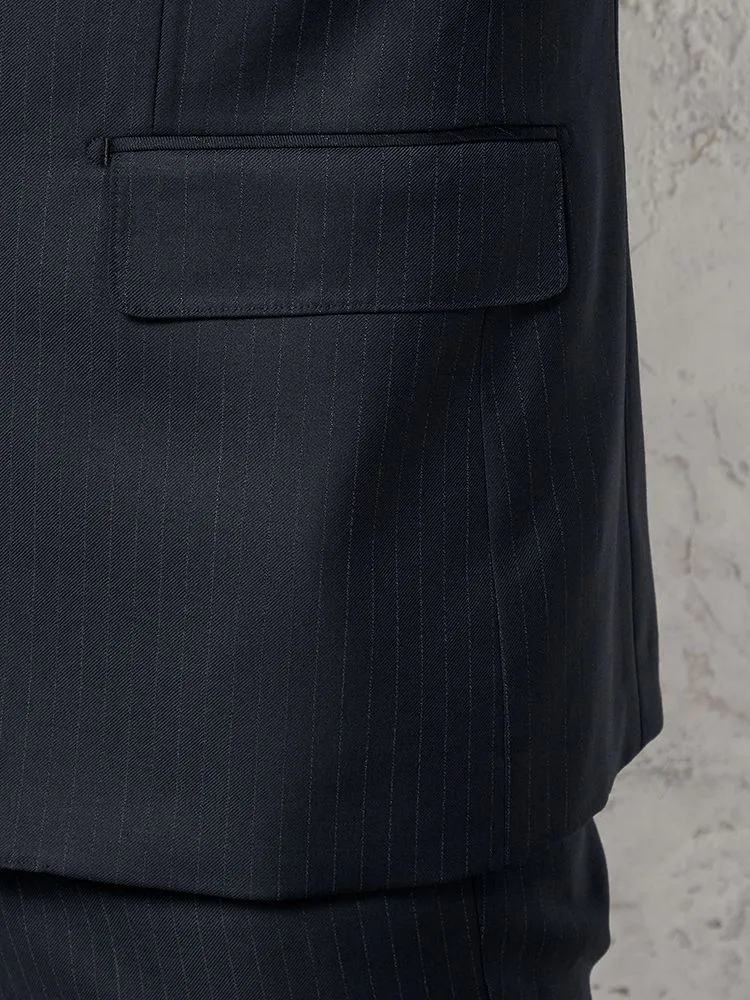 【ウール100%】スリーピーススーツ 2つボタン【REDA】イタリアインポート素材 ストライプ RUCKEN BACCHAR 秋冬(ネイビー)