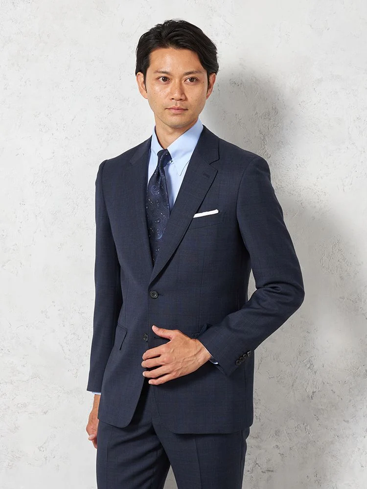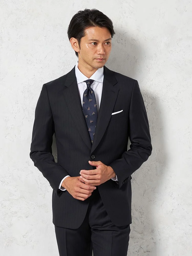 【即納】【WEB限定】スーツ2つボタンネイビーシャドウストライプ上下ウォッシャブル3シーズン対応