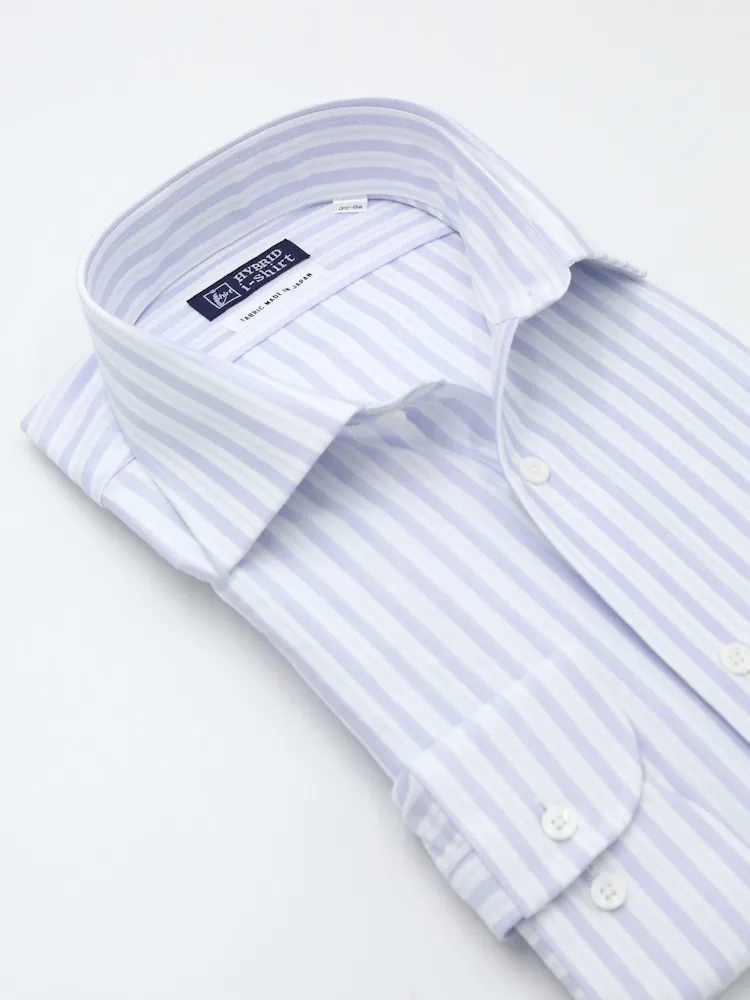 【ハイブリッドアイシャツ】長袖ワイシャツセミワイド形態安定ストレッチストライプ通年