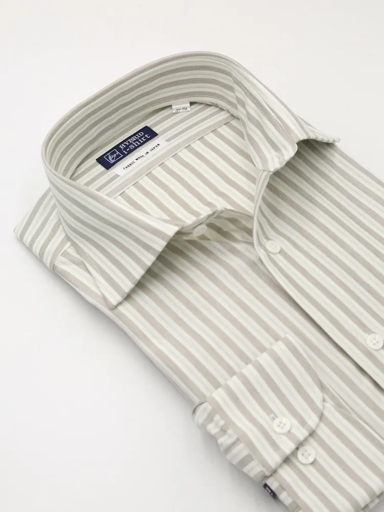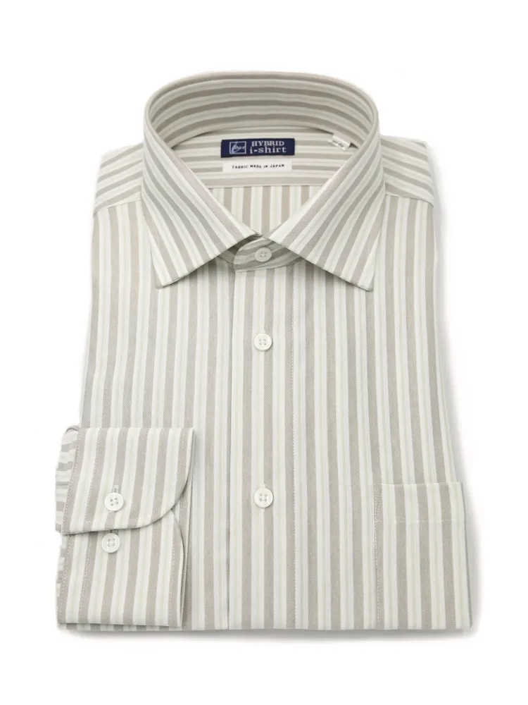 【ハイブリッドアイシャツ】長袖 ワイシャツ セミワイド 綿混素材 形態安定 ストライプ i-shirt 通年(L.グレー)