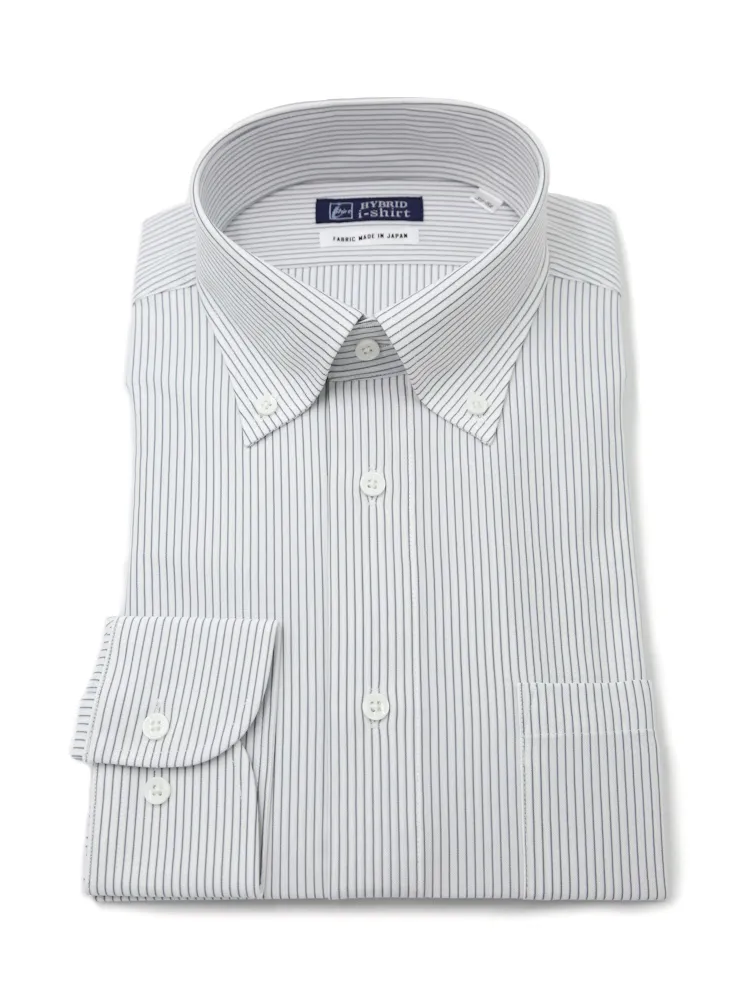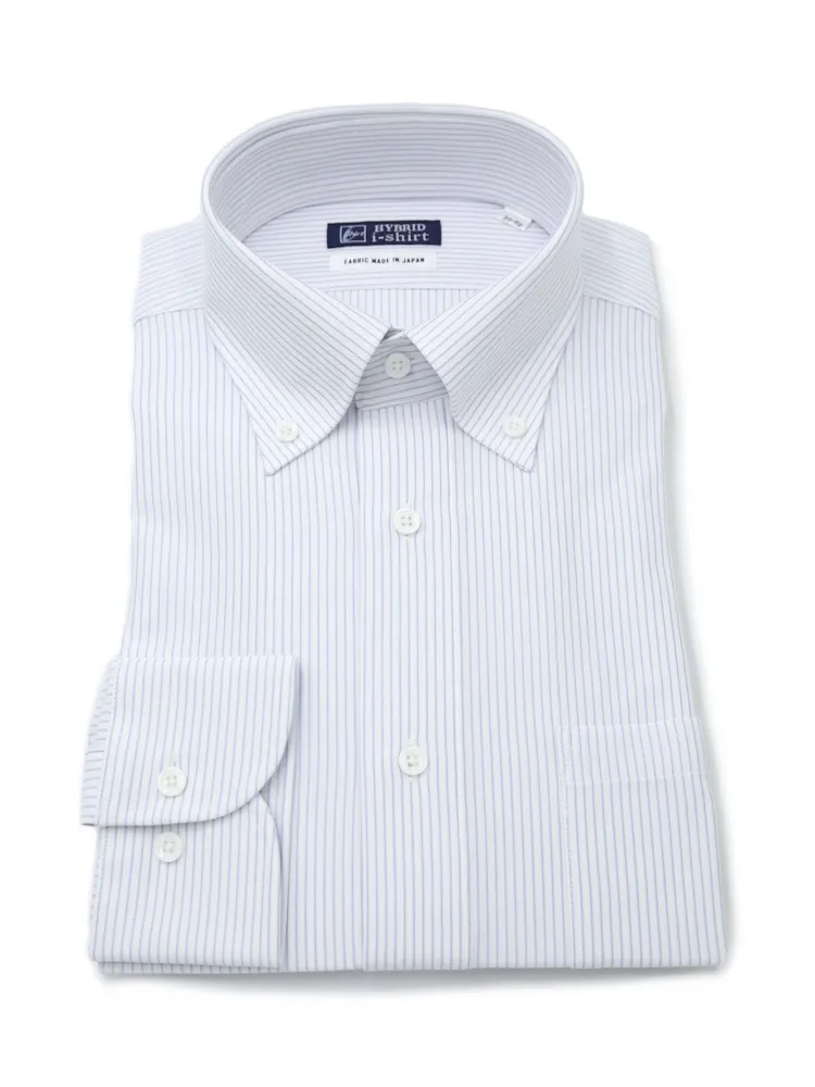 【ハイブリッドアイシャツ】長袖ワイシャツボタンダウン形態安定ストレッチマイクロストライプ通年