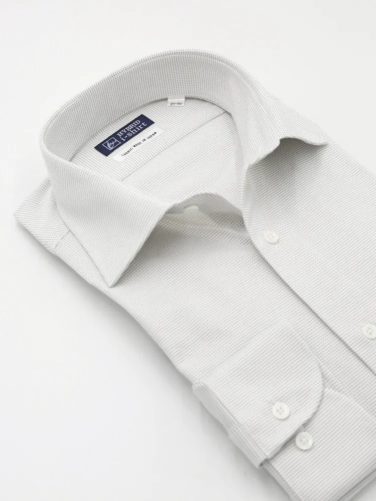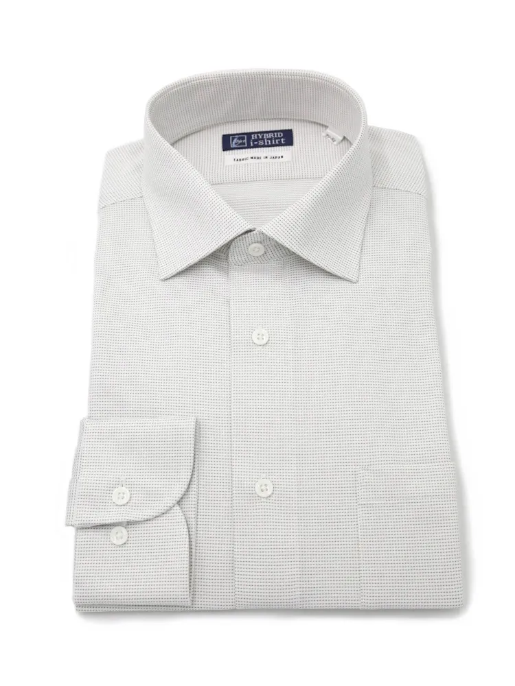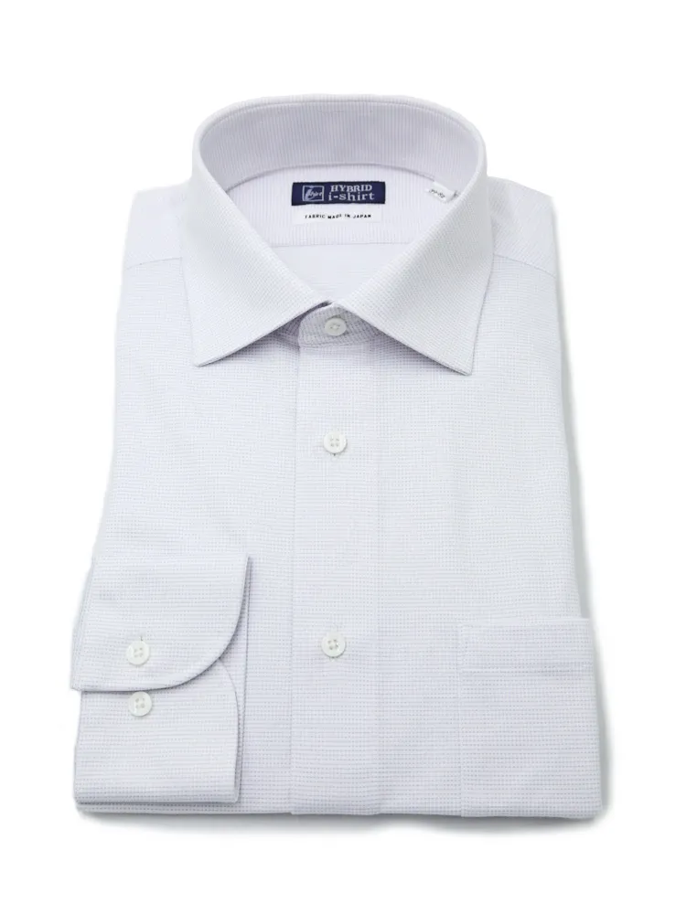 綿素材ワイシャツの風合いを表現した【ハイブリッドアイシャツ】。