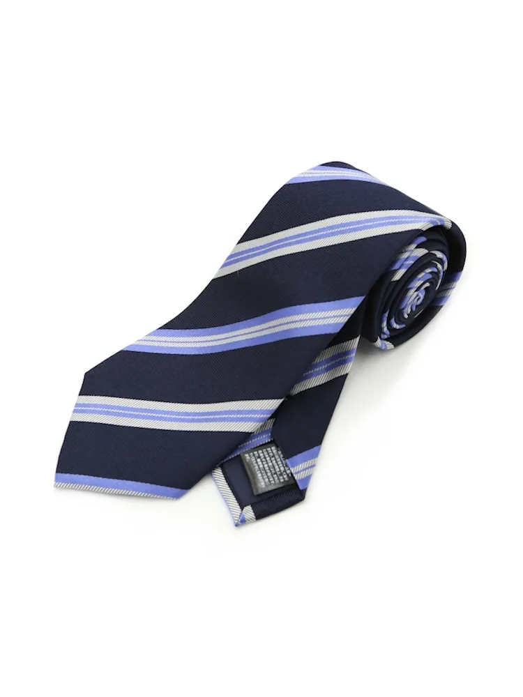 【シルク混】ネクタイレギュラーリクルートタイネイビーストライプnero通年