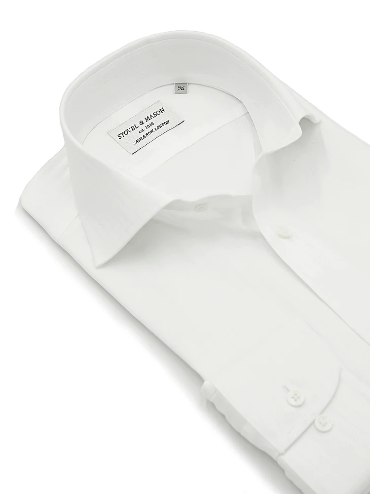 【綿×キュプラ】長袖ワイシャツワイドカラーキュプラ繊維ベンベルグR素材使用織柄無地へリンボンSTOVEL&MASON通年