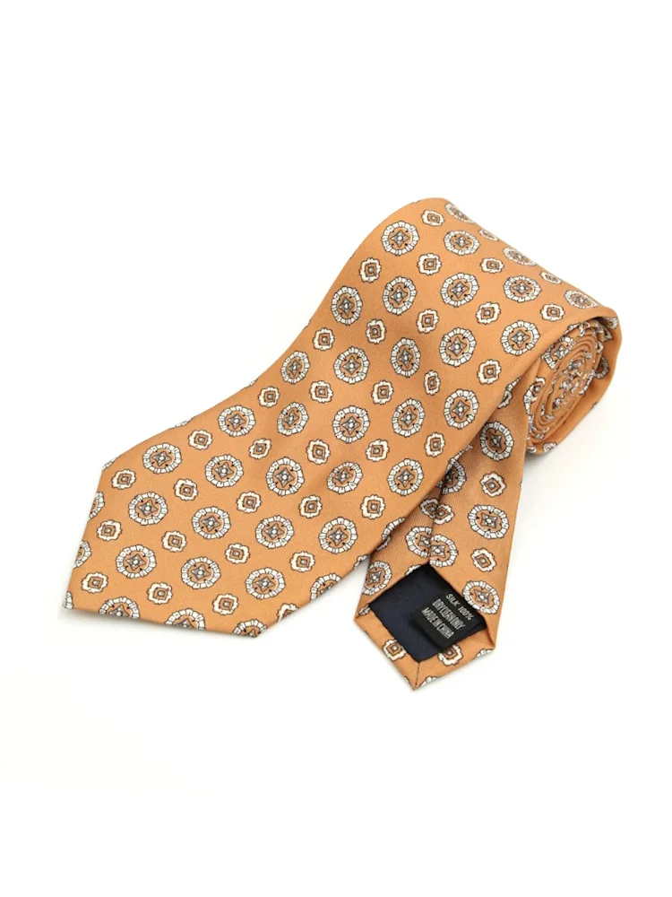 【シルク100%】ネクタイ レギュラー プリントタイ 小柄 S&M BLUE LABEL(オレンジ)