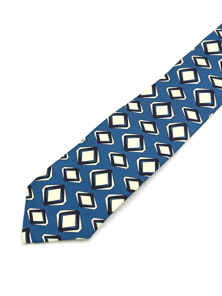 【シルク100%】ネクタイレギュラープリントタイ小柄S&MBLUELABEL