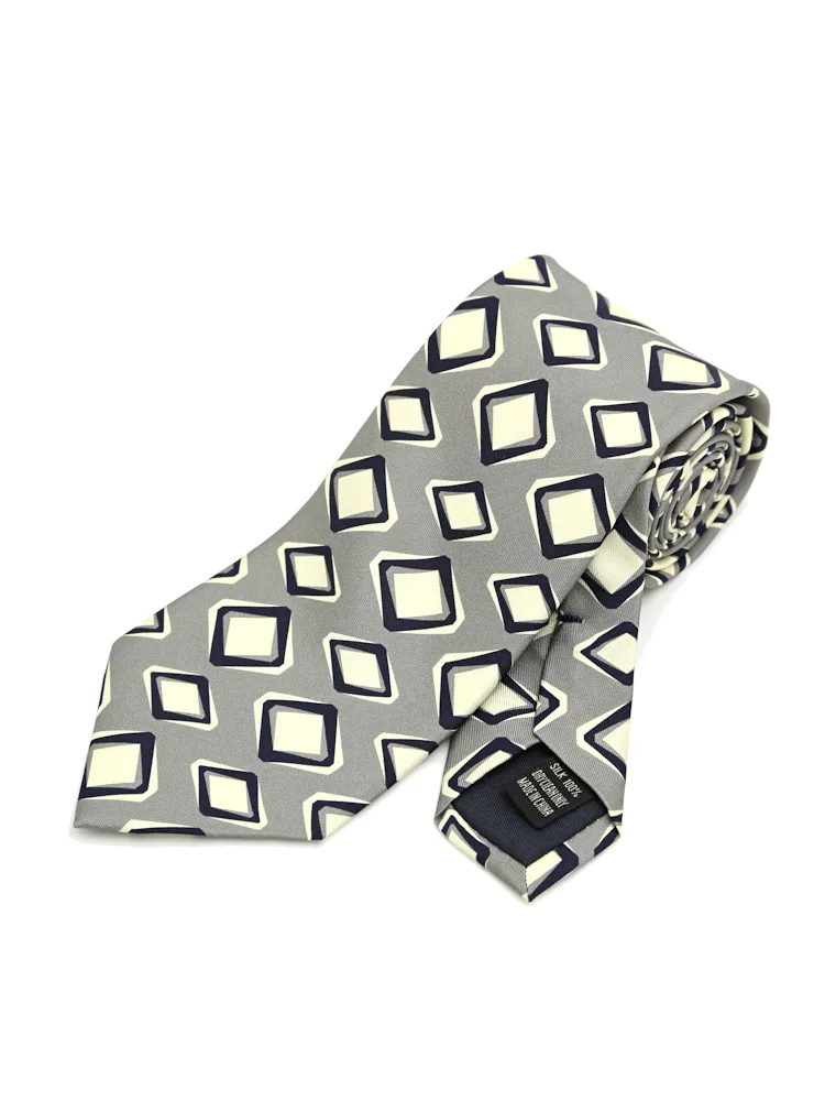 【シルク100%】ネクタイ レギュラー プリントタイ 飛び柄 S&M BLUE LABEL(L.グレー)