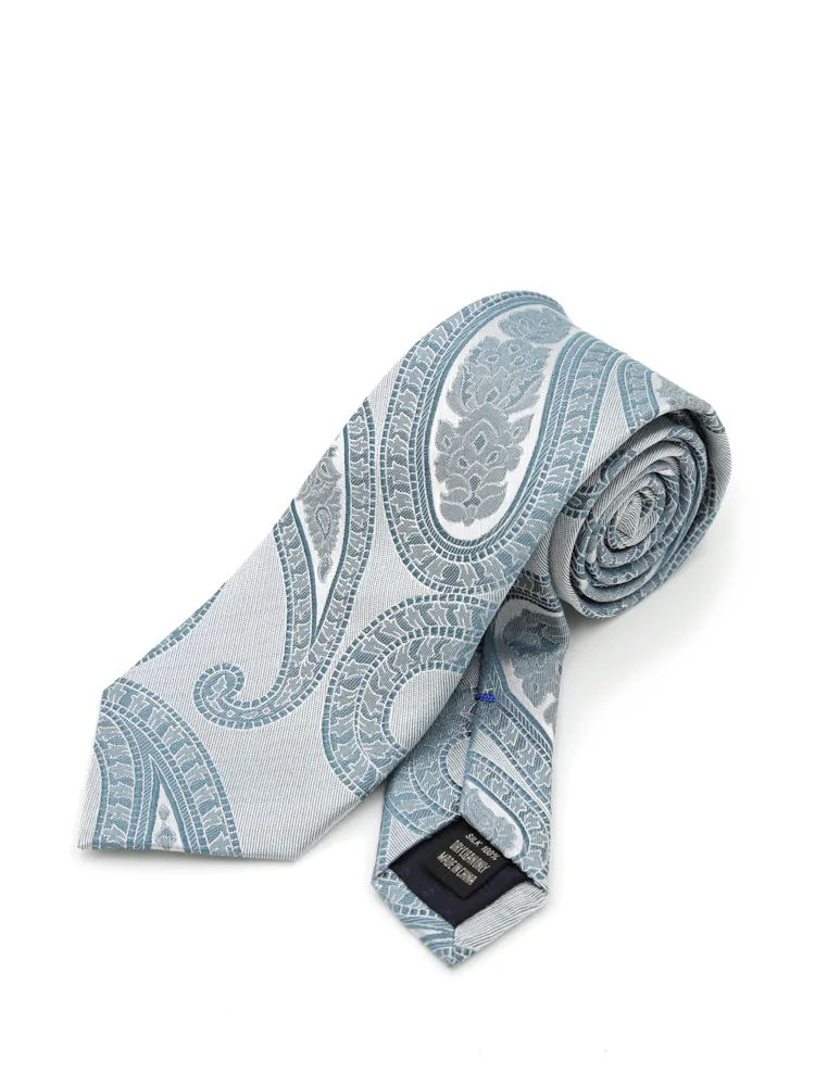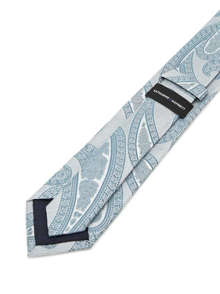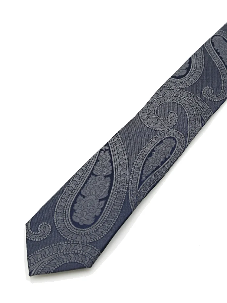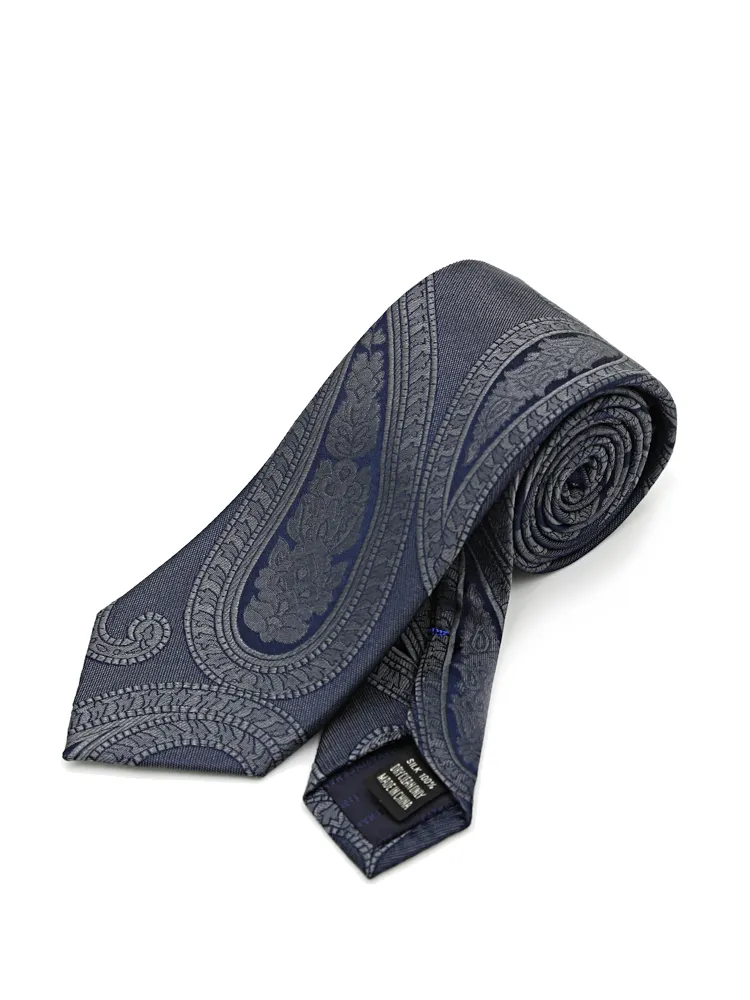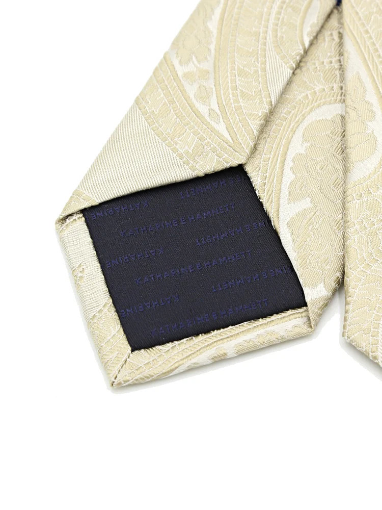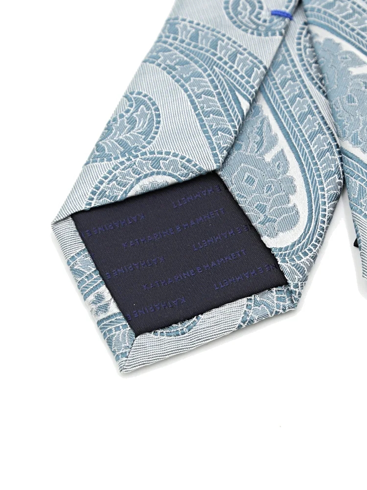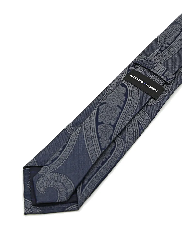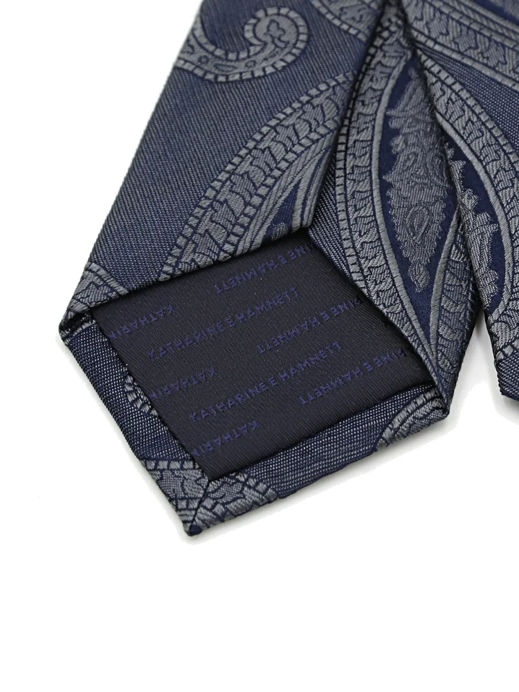 【KATHARINE E HAMNETT-キャサリン・イー・ハムネット-】レギュラーネクタイ ペイズリー柄 シルク100% 7.5cm巾(ネイビー)