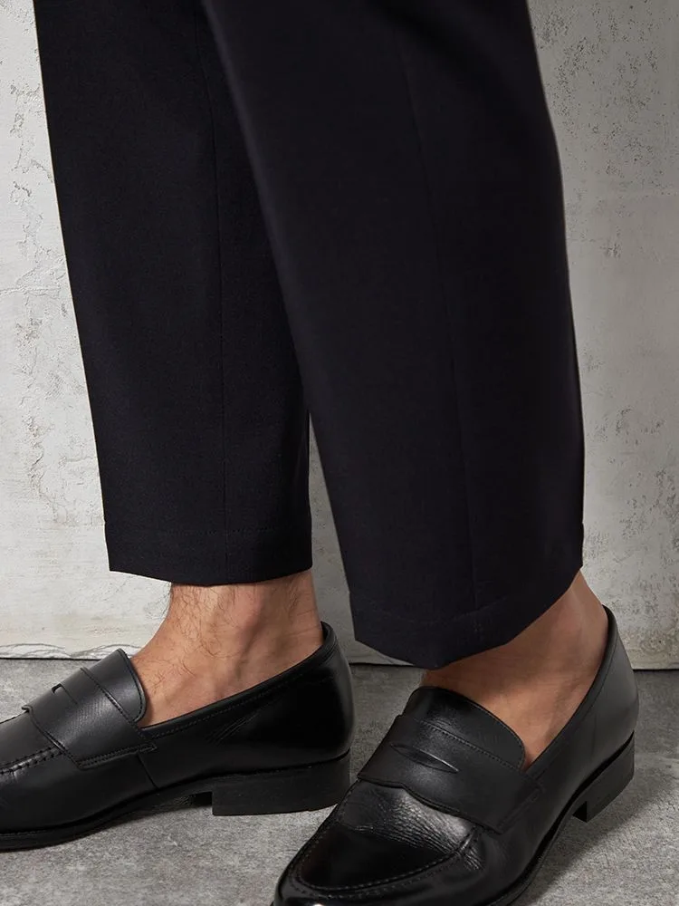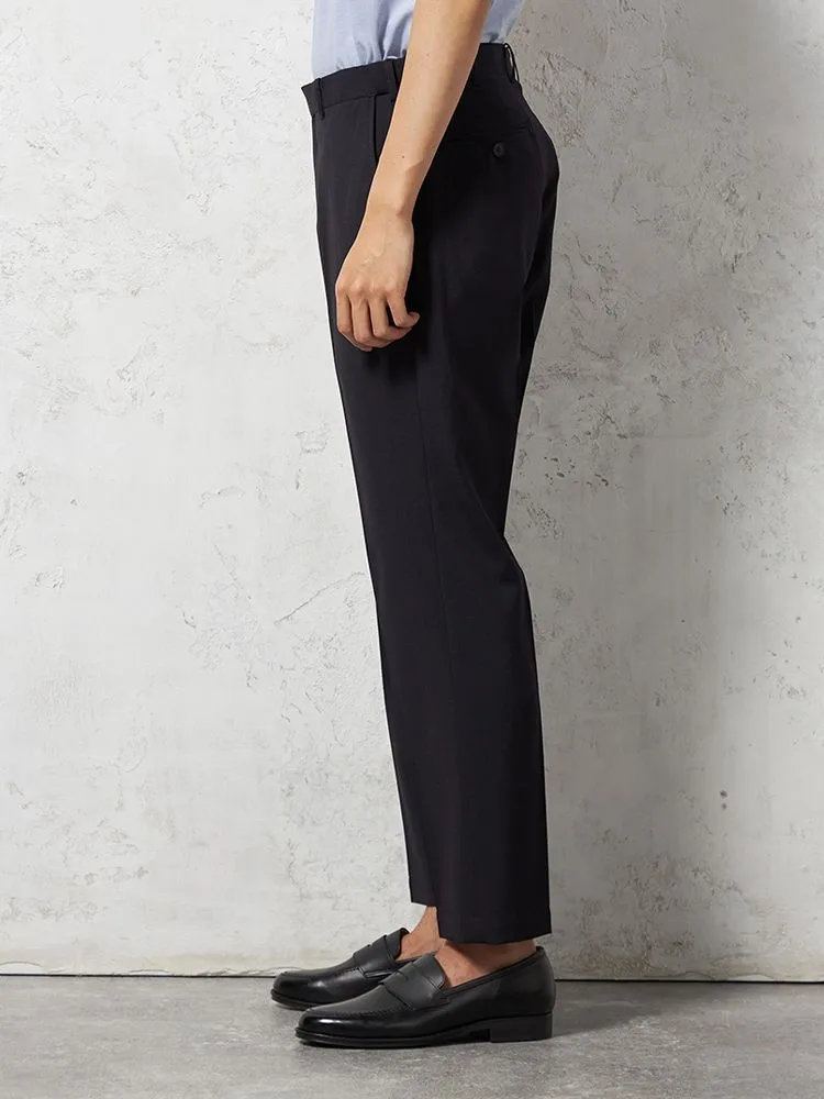 【ウォッシャブル】パンツスラックスノータック防しわリッケンバッカーブラック
