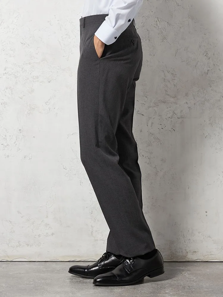 【ウォッシャブル】パンツノータックツイル柄チェックnero【スリムデザイン】