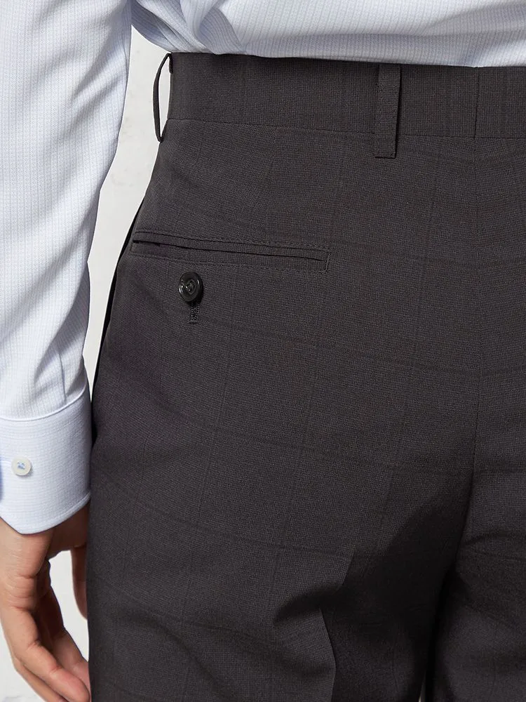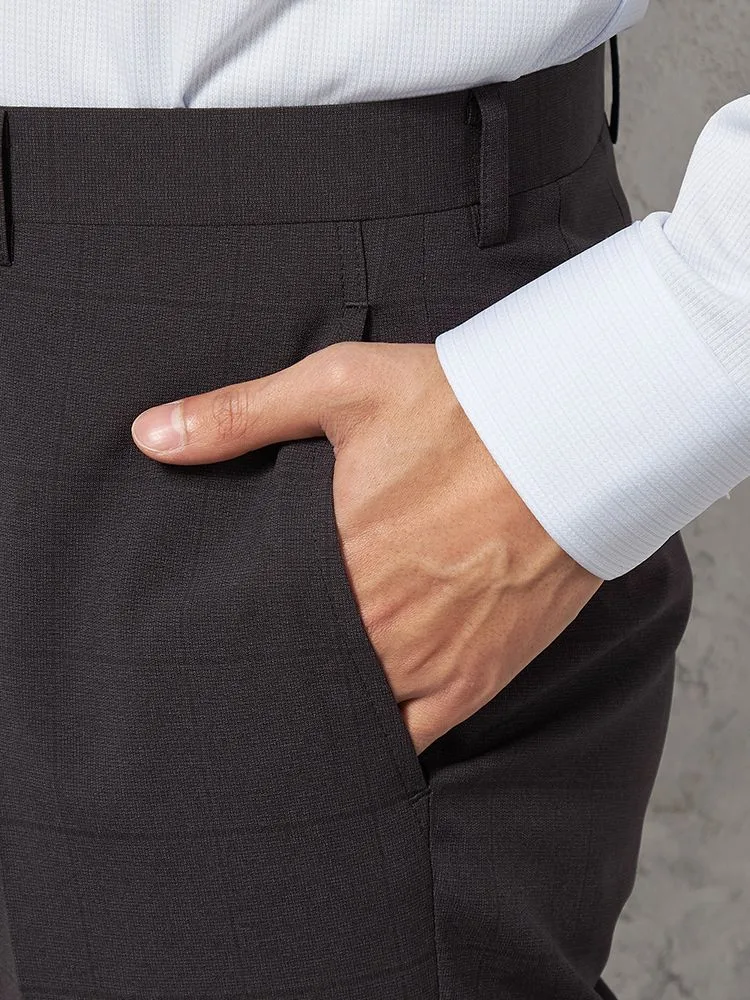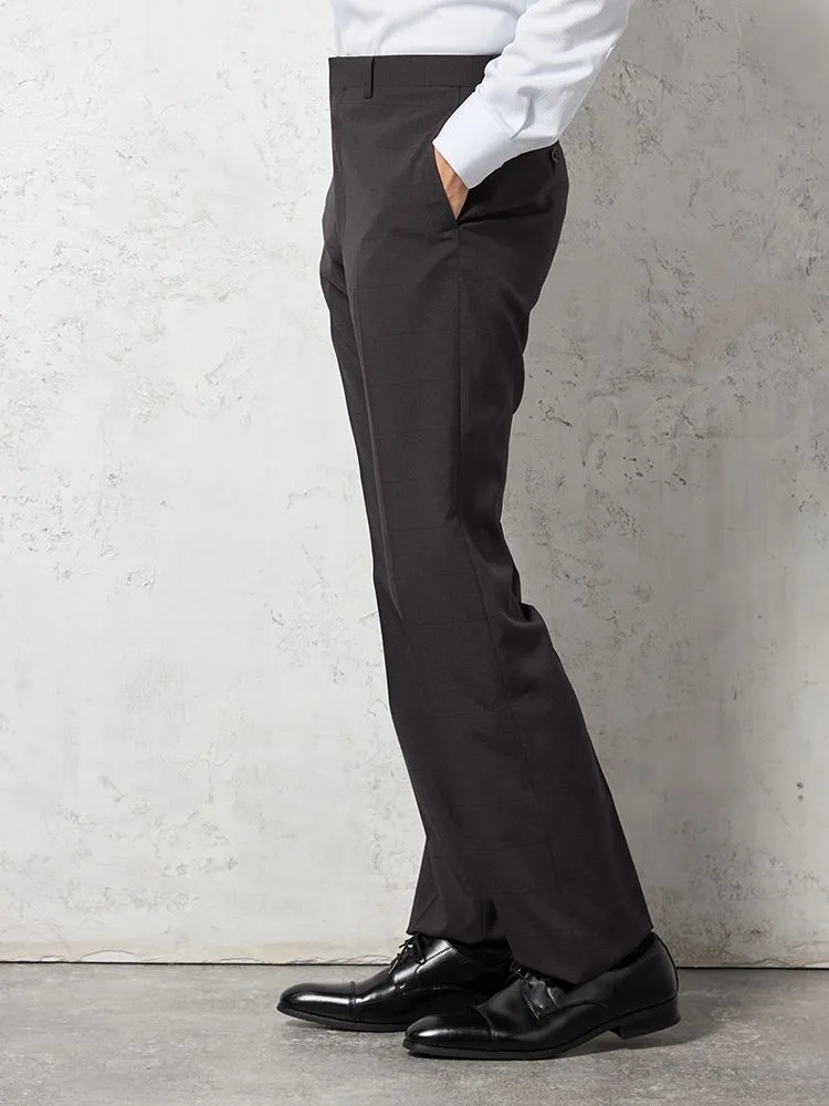 大柄の格子チェックが特徴的な、ノータック仕上げのスラックスです。