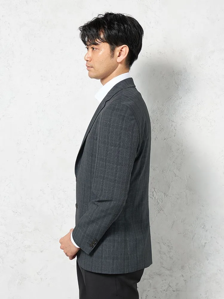 【超軽量】ジャケット2つボタンリネンタッチ高通気ネイビーチェックRUCKENBACCHAR春夏