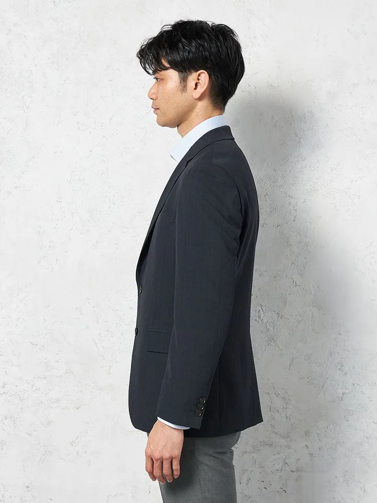 【軽量】ジャケット2つボタンリネンストレッチ吸水速乾裏地無地リッケンバッカーブラック春夏
