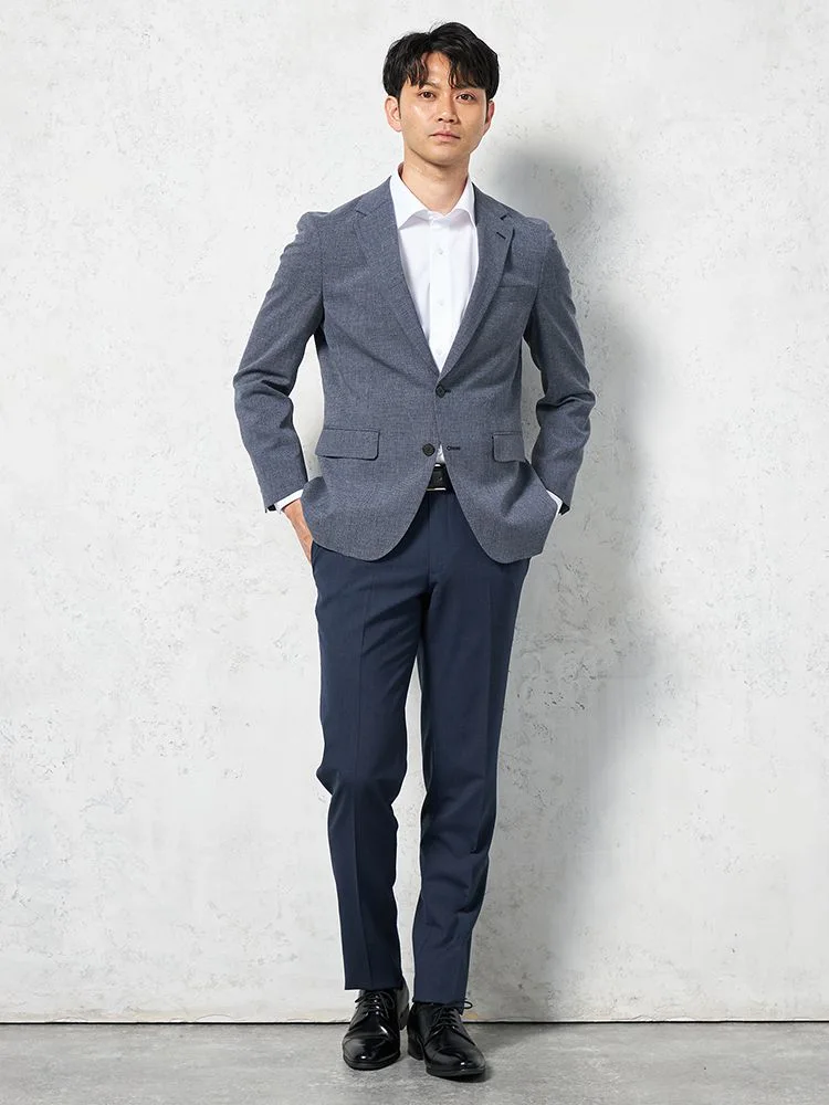 切り込みが1本のセンターベントデザインです。細身でスッキリとしたシルエットが特徴で、快適な着心地を提供します