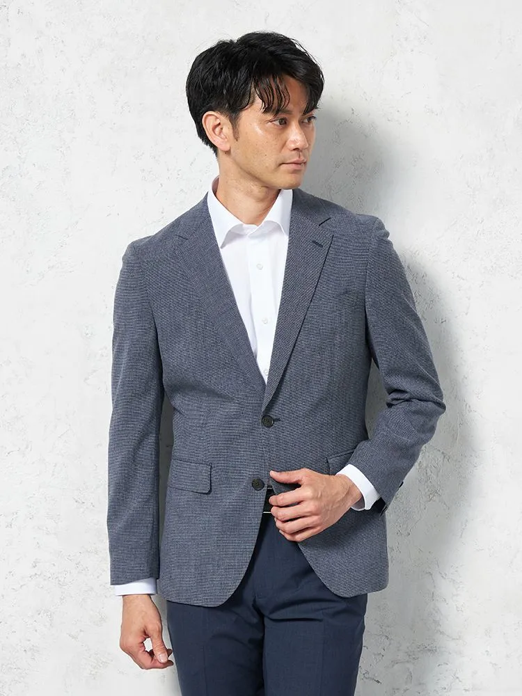【i-Jacket-アイジャケット-】トリコットメッシュプリントジャケット2つボタンストレッチ高通気軽量ネイビー無地春夏