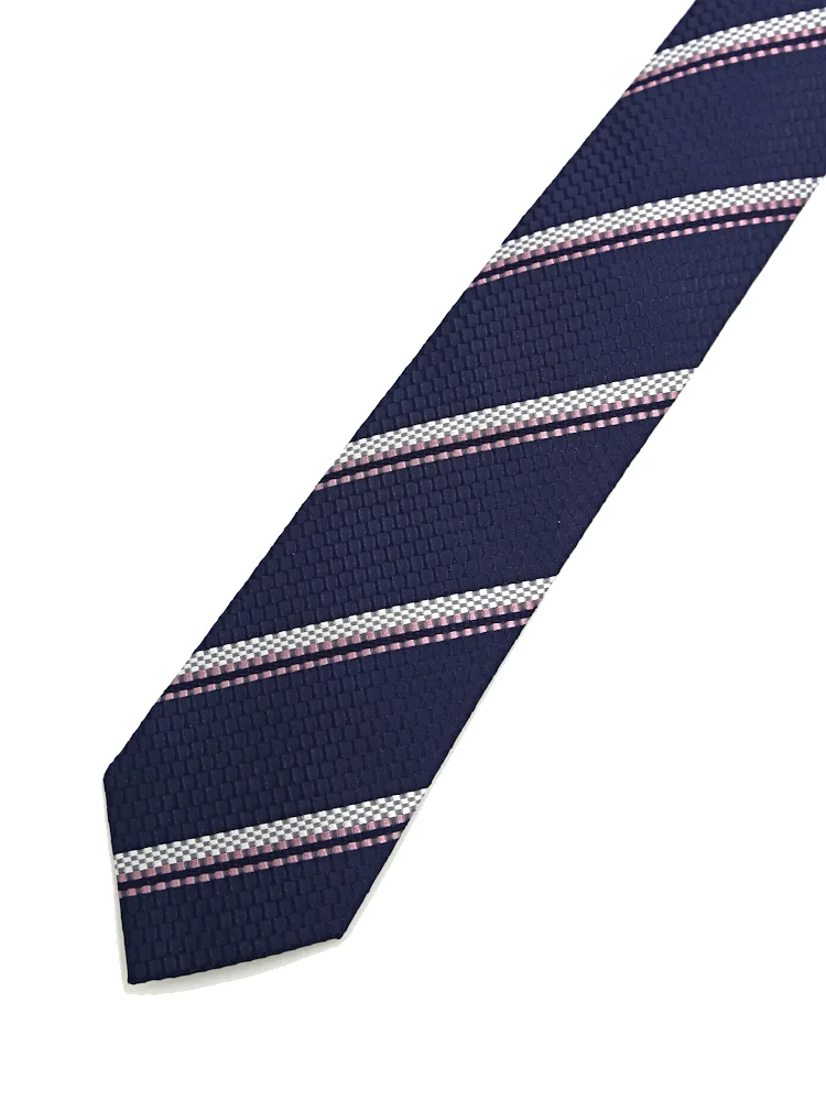 【シルク混】ネクタイレギュラーリクルートタイネイビーストライプnero通年