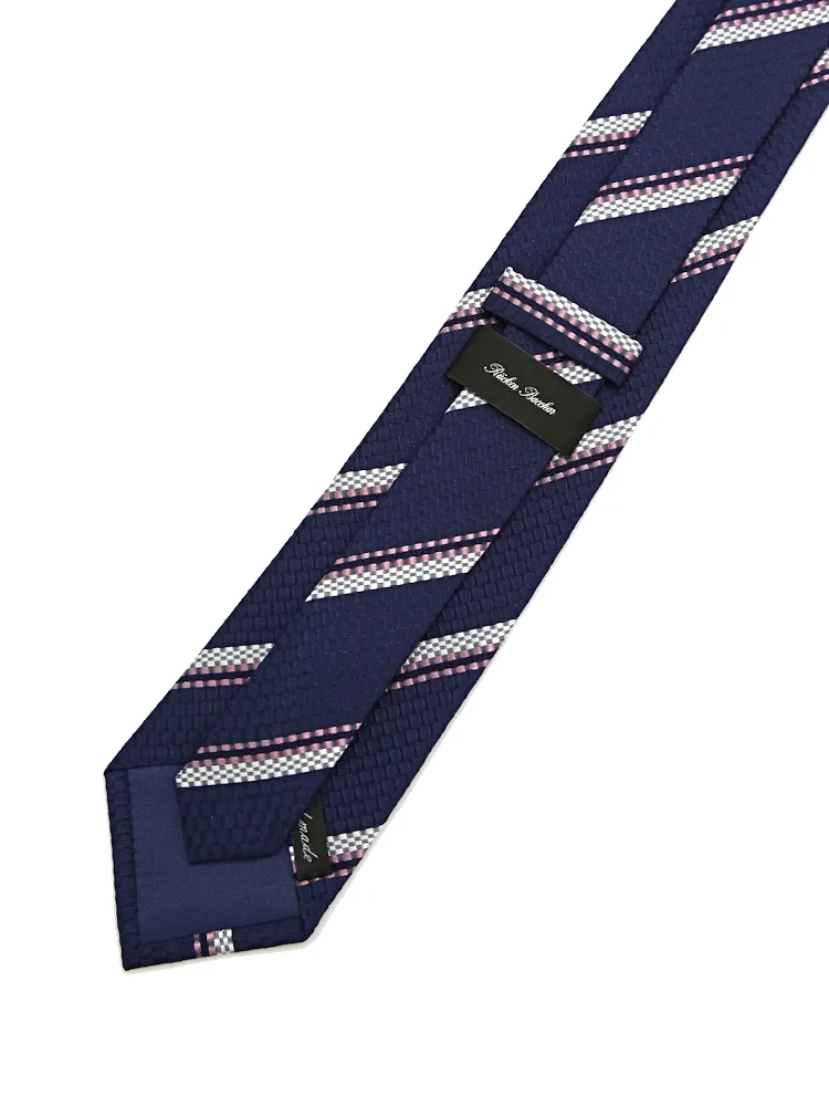 【向けリップル加工】ネクタイ レギュラー シルク100% ストライプ RUCKEN BACCHAR(ネイビー)