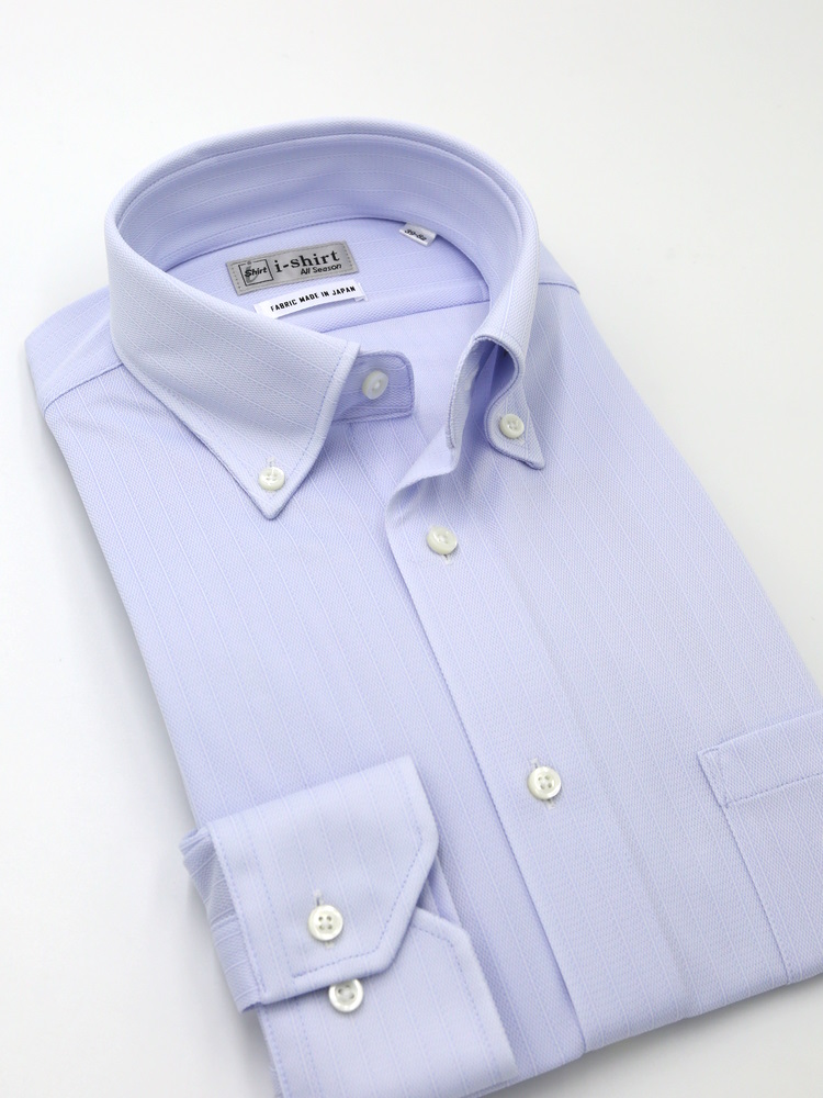 【即納】WEB限定【完全ノーアイロン】長袖 アイシャツ ボタンダウン ストレッチ ストライプ i-shirt 通年(サックス)