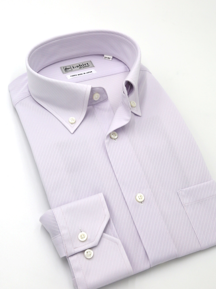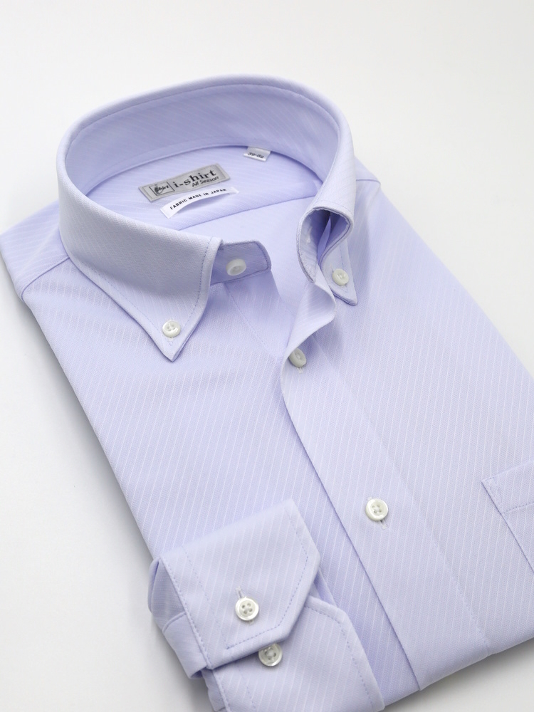 【形態安定】アイシャツ長袖ワイシャツボタンダウン織柄無地i-shirt通年