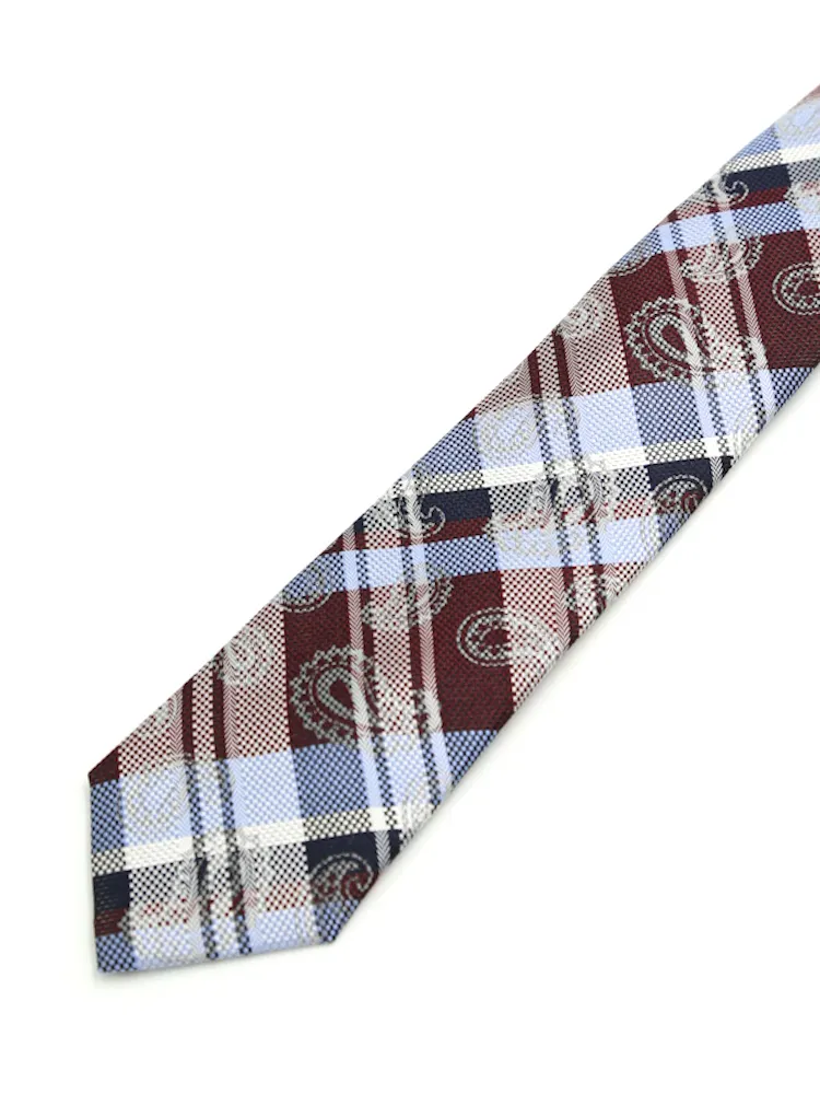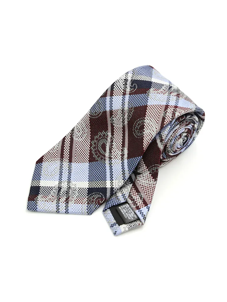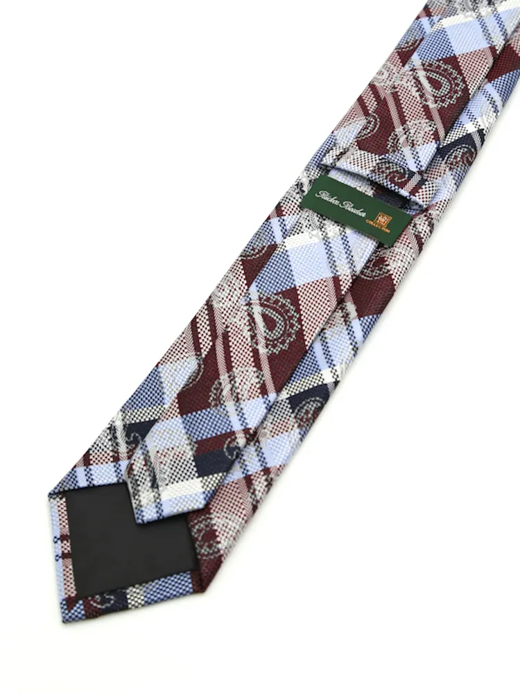 【シルク100%】ネクタイ レギュラー パターンONパターンタイ チェック RUCKEN BACCHAR(レッド)