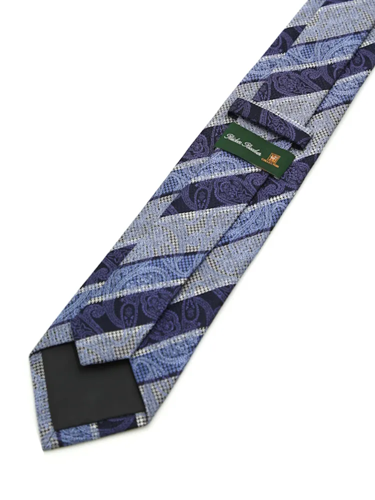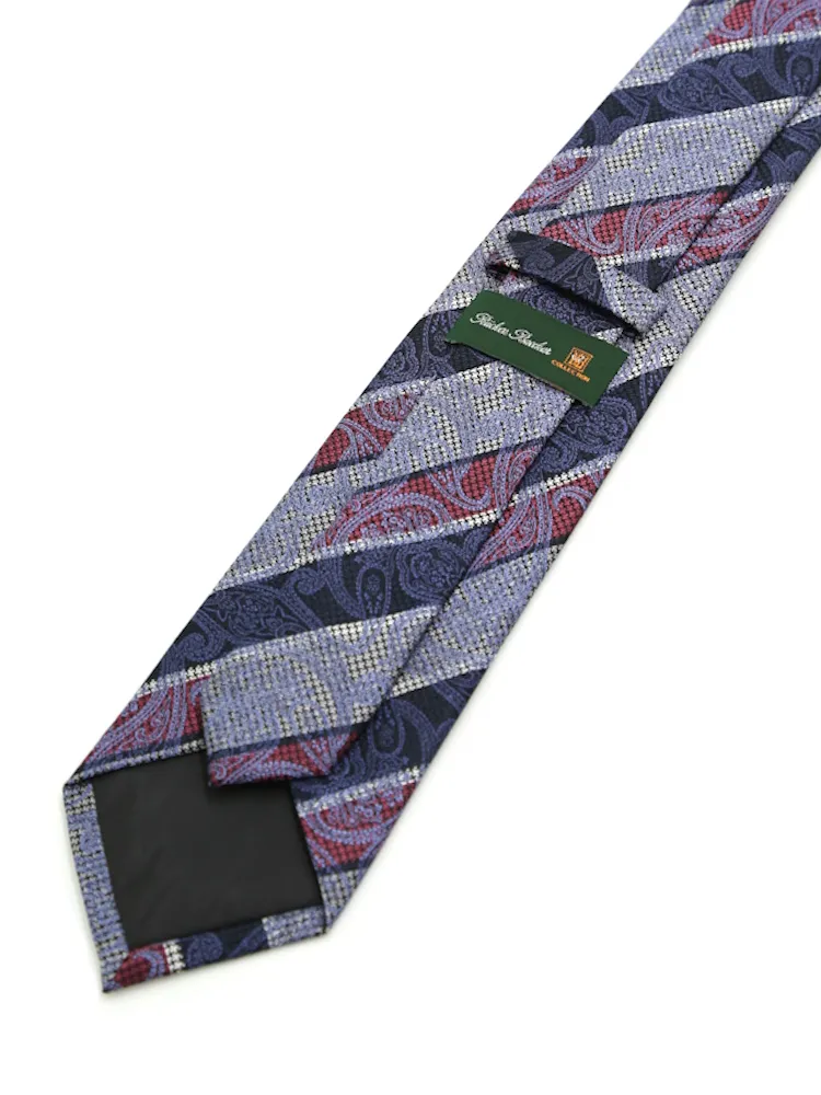 パターンにパターンを重ねた上質な柄が特徴のリッケンバッカーネクタイ。