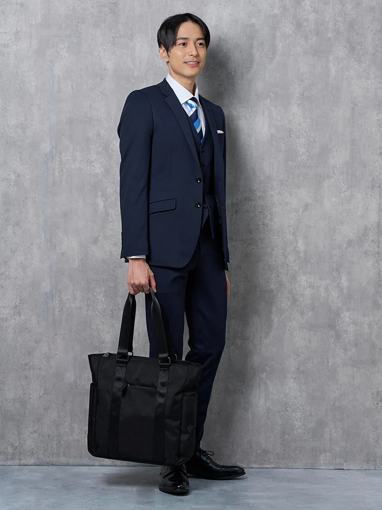 ジャケット、パンツ、ベストの3点セットで、スーツ全体を簡単にコーディネートできます。ビジネスやフォーマルな場面に最適です。
