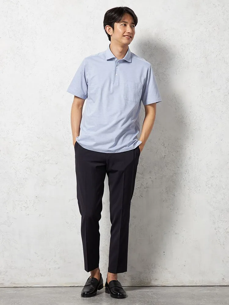 汎用性が高く着まわしのきく、無地の半袖ポロシャツです。