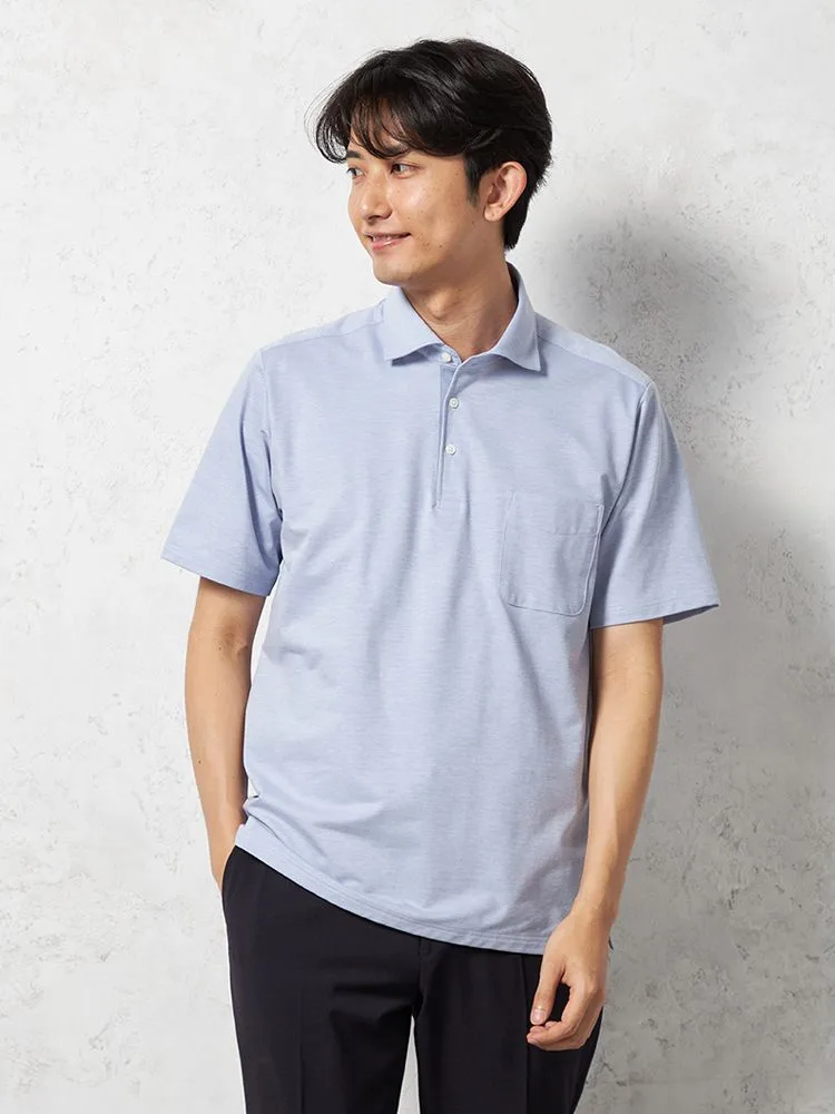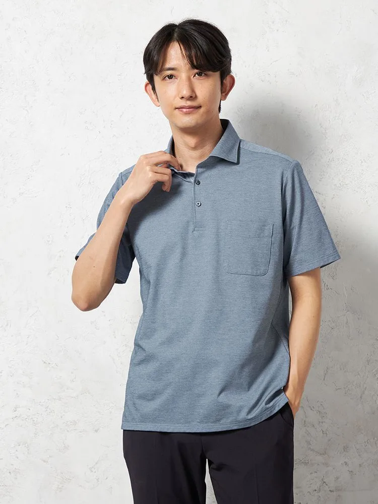 【吸汗速乾】半袖ポロシャツワイドカラービズポロ織柄無地カジュアルインナーTOKYORUN春夏
