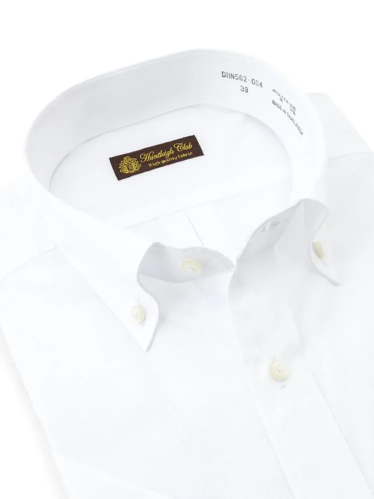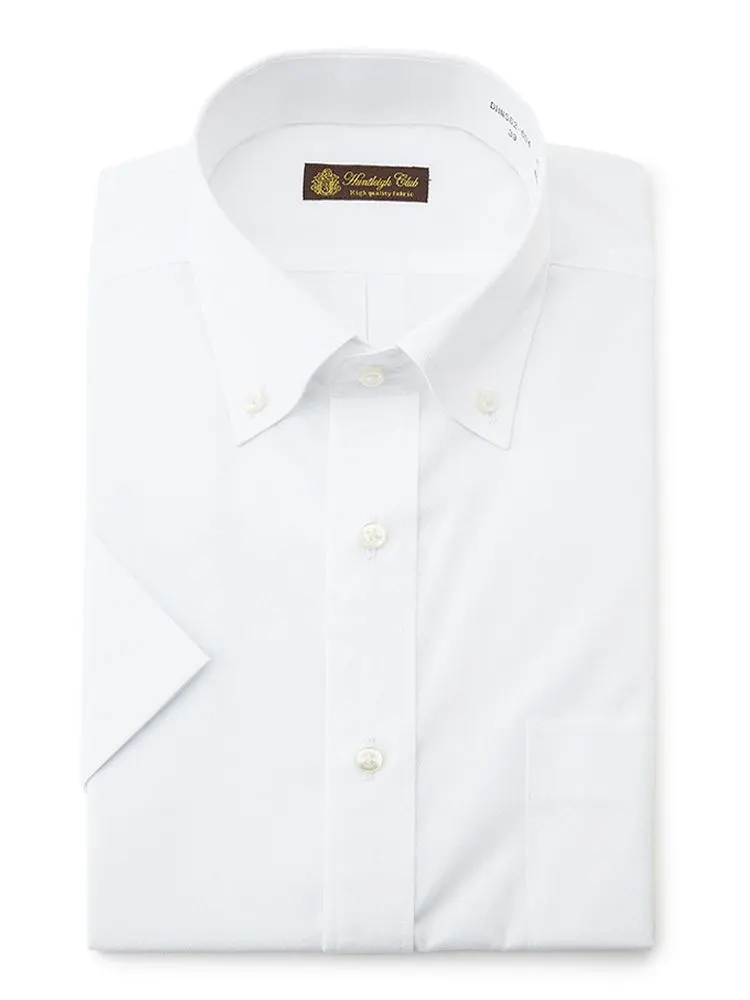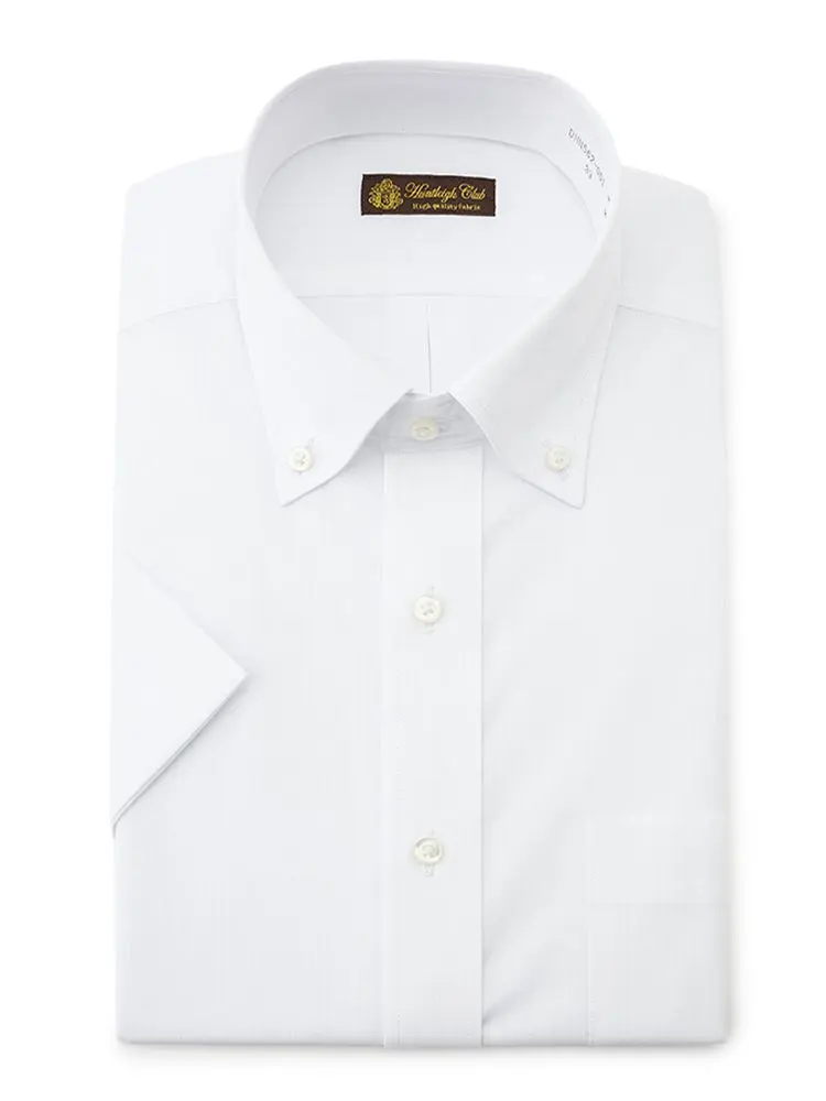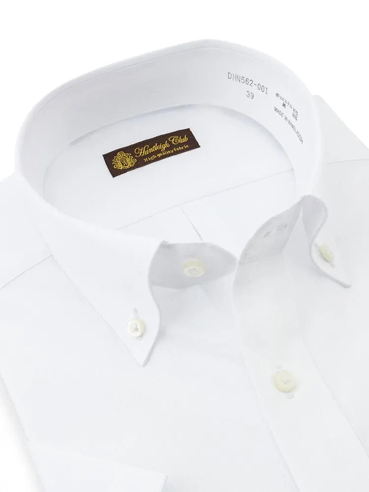 【形態安定】半袖ワイシャツボタンダウン白ドビー織柄無地ハントレークラブ春夏