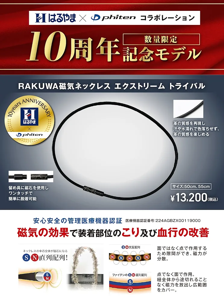 はるやま×phitenコラボレーション 10周年記念モデル RAKUWA 磁気ネックレス【50cm】