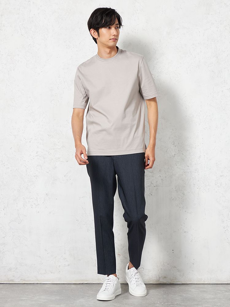綿100%の素材で、肌に優しく、通気性も抜群。快適に着用できるだけでなく、デイリーで使いやすい素材です。