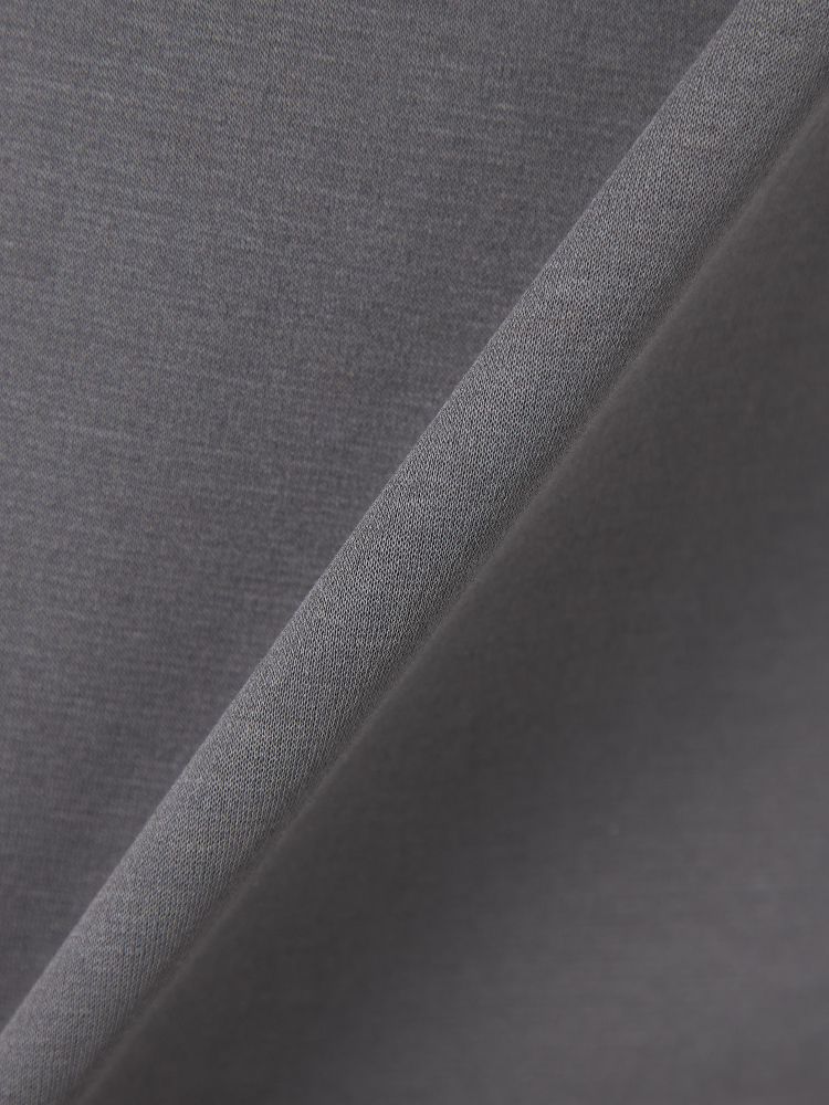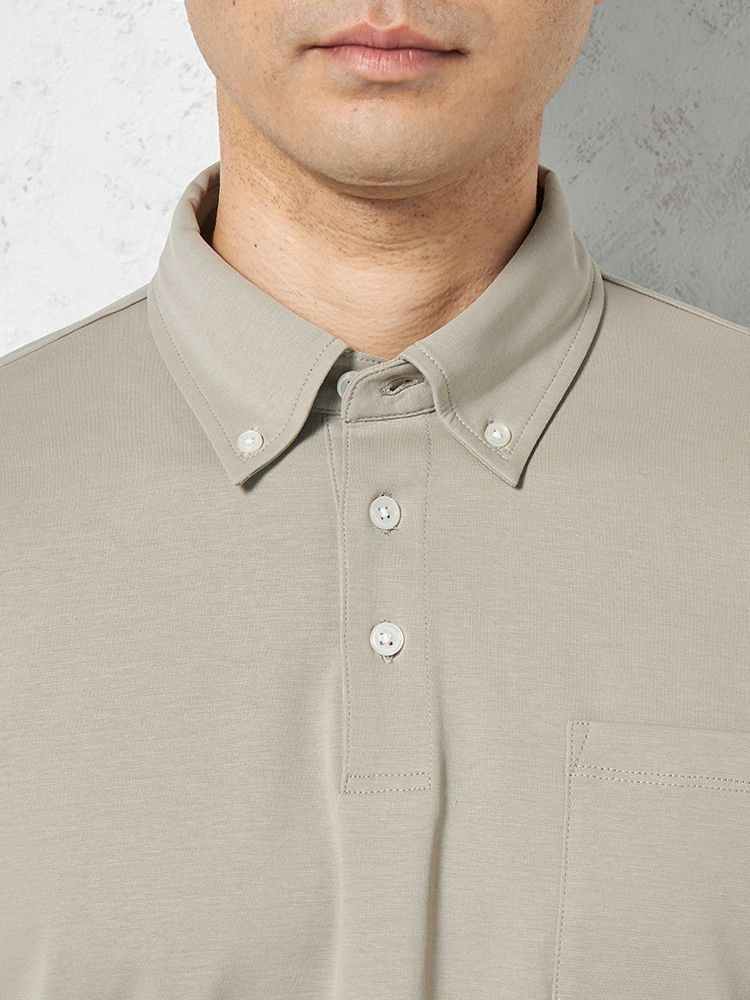 コットン100%で優しい肌触りでありながら、膨らみがあり適度なハリコシがあるダブルジャージ構造と、シルケット加工で生地表面に光沢を出したことにより、キレイ目な仕上がりを実現。