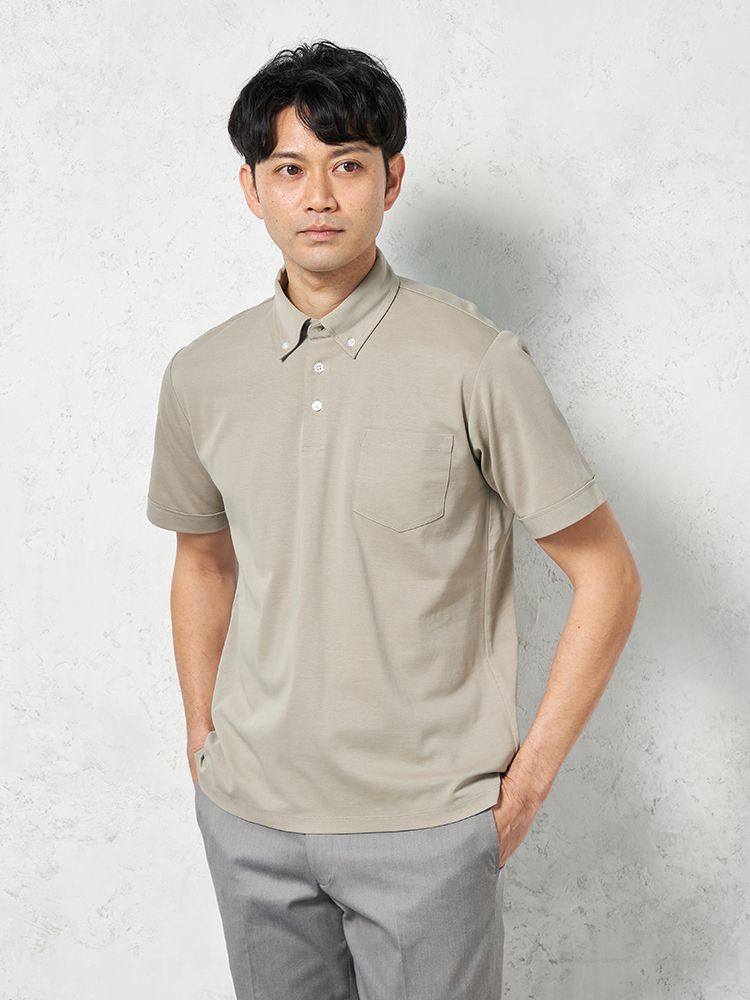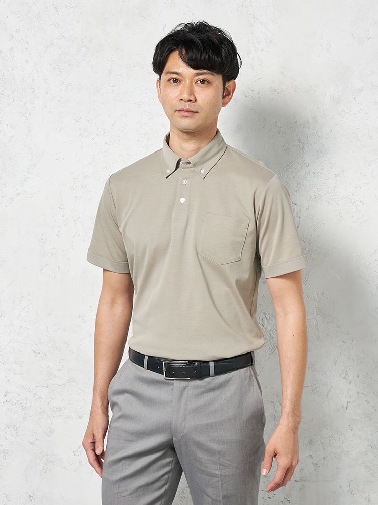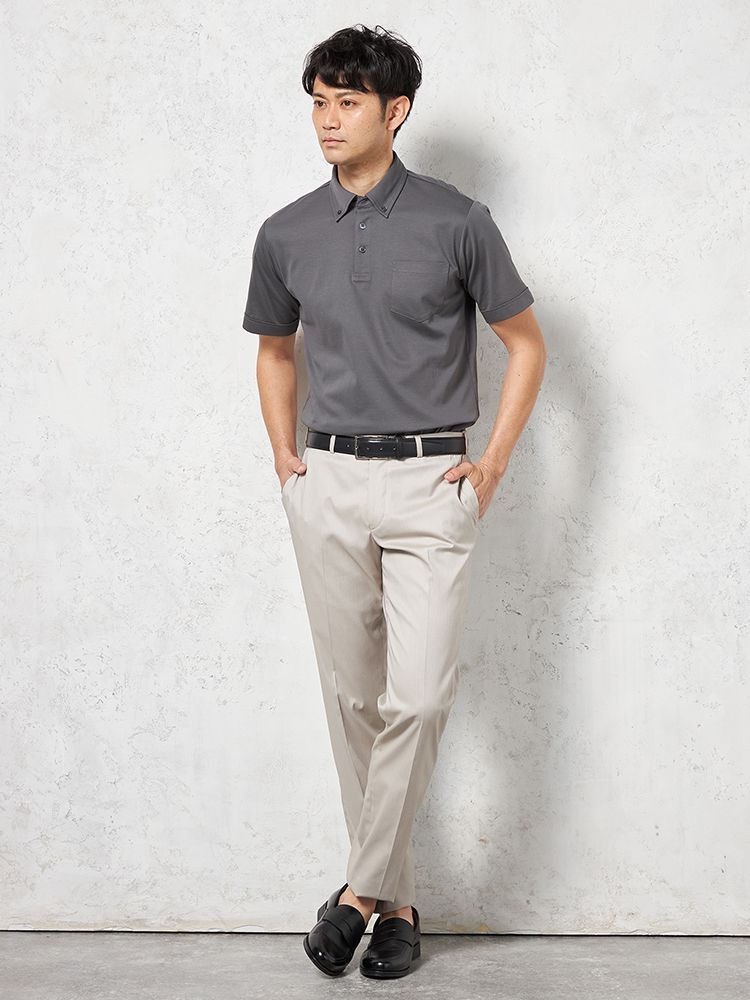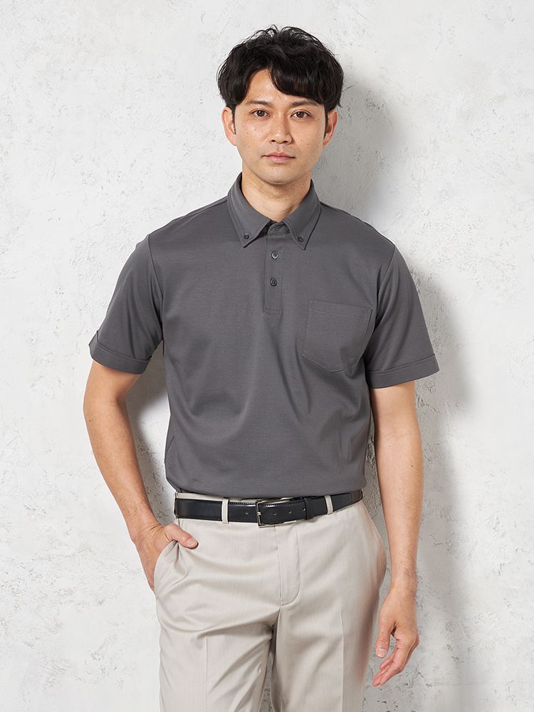 • C.グレー 【汗じみ防止】 半袖 ビズポロシャツ ボタンダウン 無地 TOKYO RUN 春夏 | はるやま公式通販