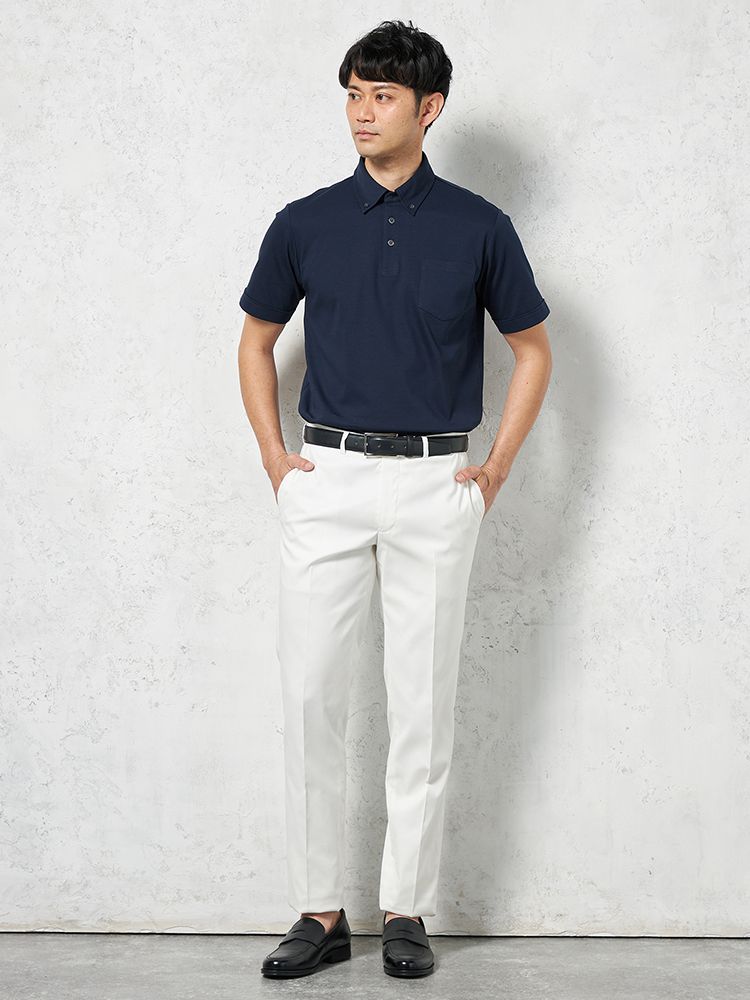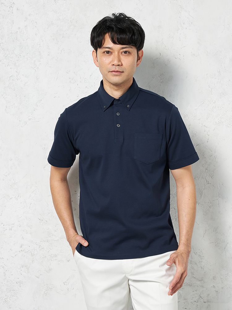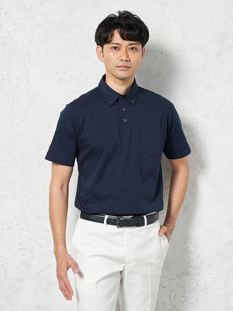 3Dカット(立体裁断)でラクに動けて、余分なダブつきがなくシルエットがキレイに見えるビズポロシャツです。