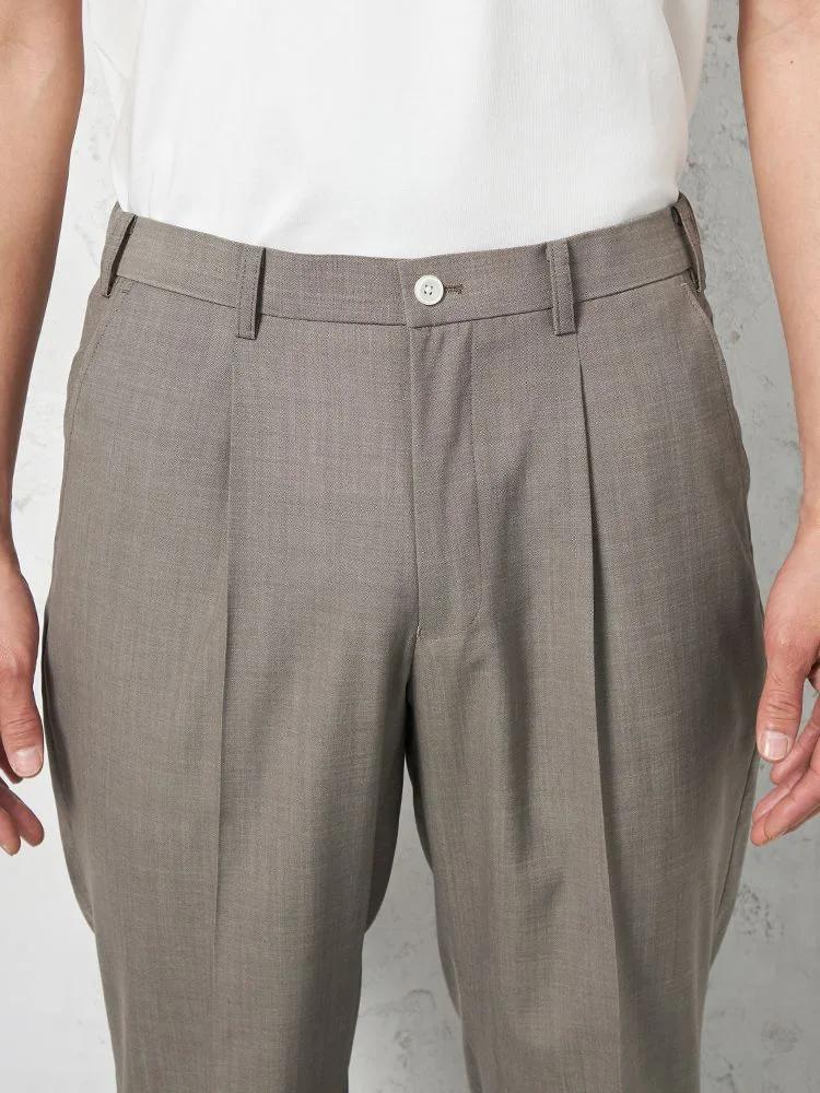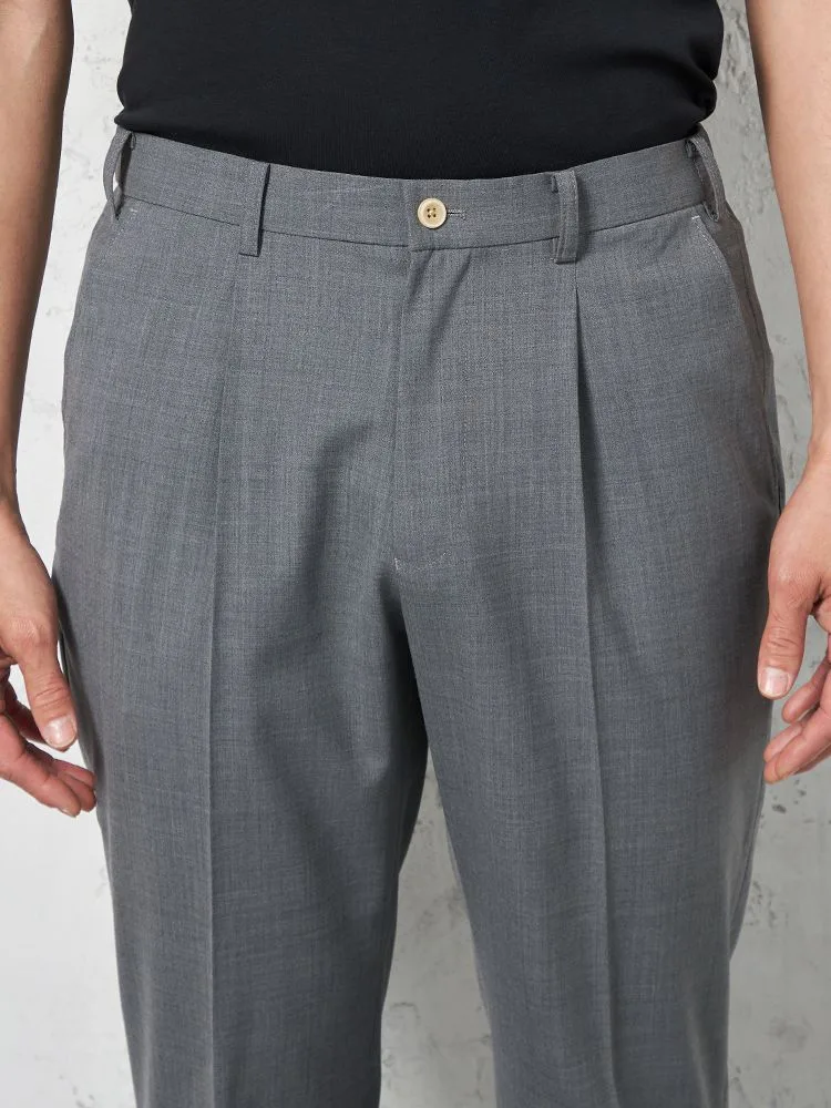 腰まわりにワンタック、フロントにシャープなセンタープレスを配しています。