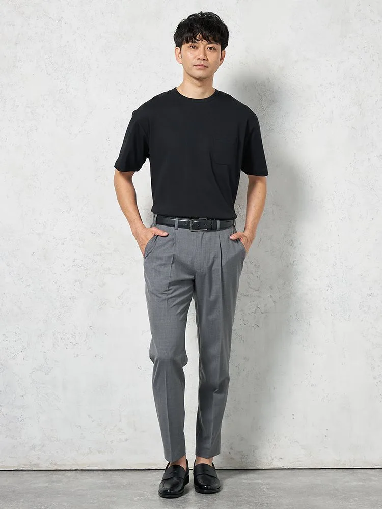 【接触冷感】パンツ ワンタック 超軽量 TW素材【セットアップ商品有】 リッケンバッカーブラック 春夏(L.グレー)