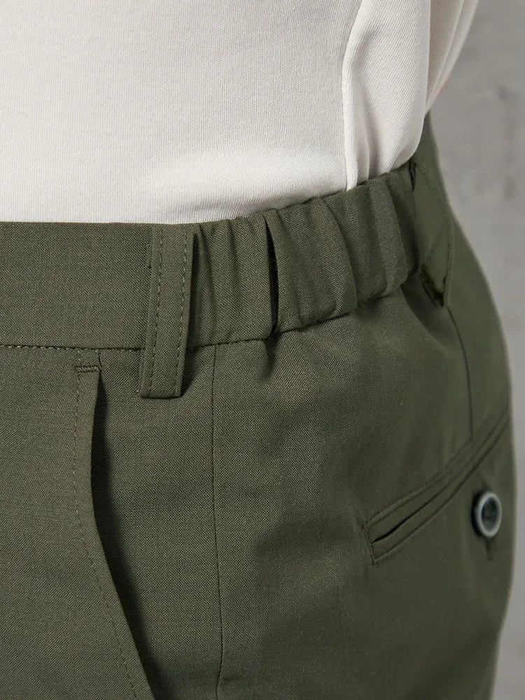 シワになりにくく、適度な表生地のストレッチ性も合わさり上品な印象ながらも快適な穿き心地。