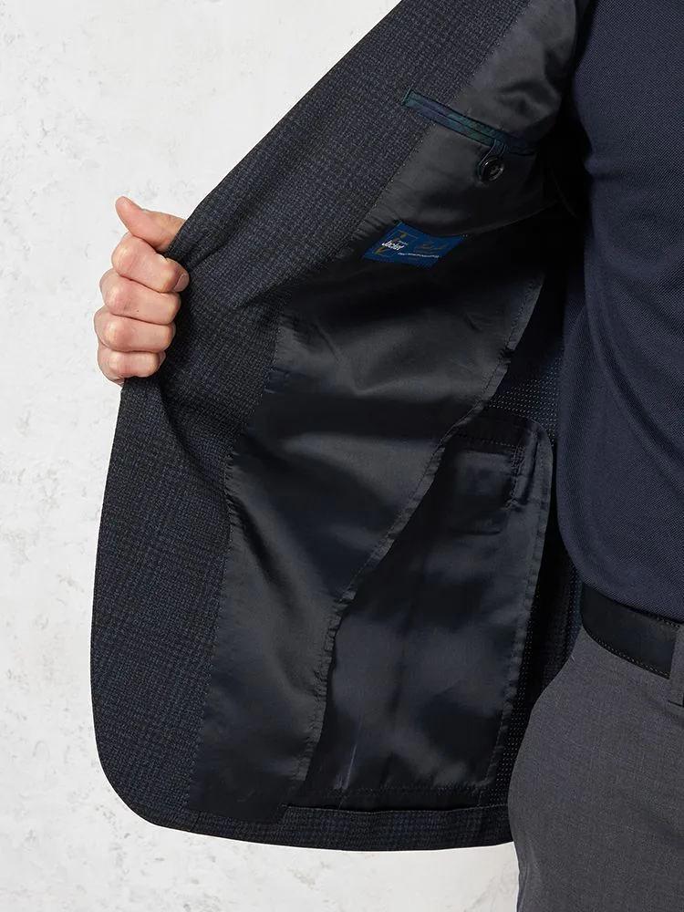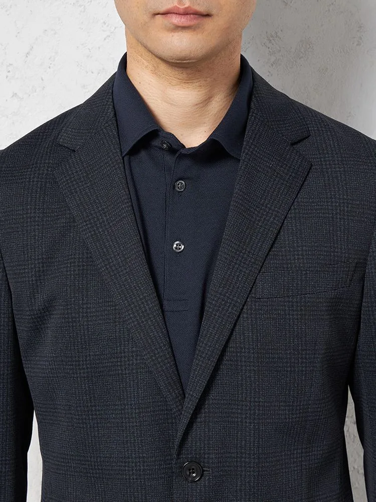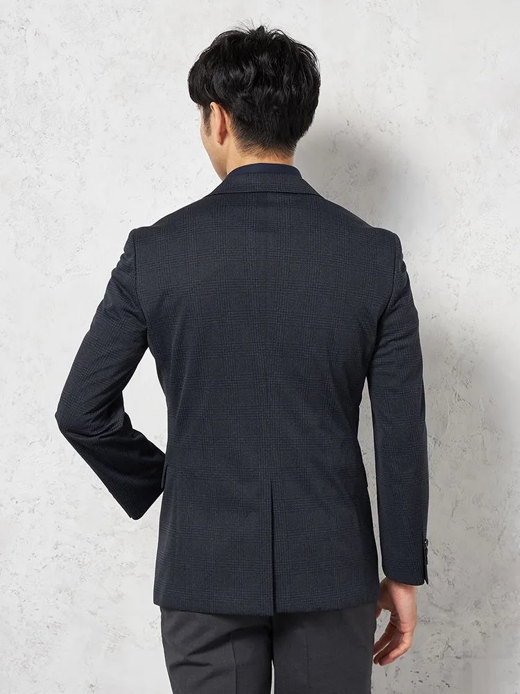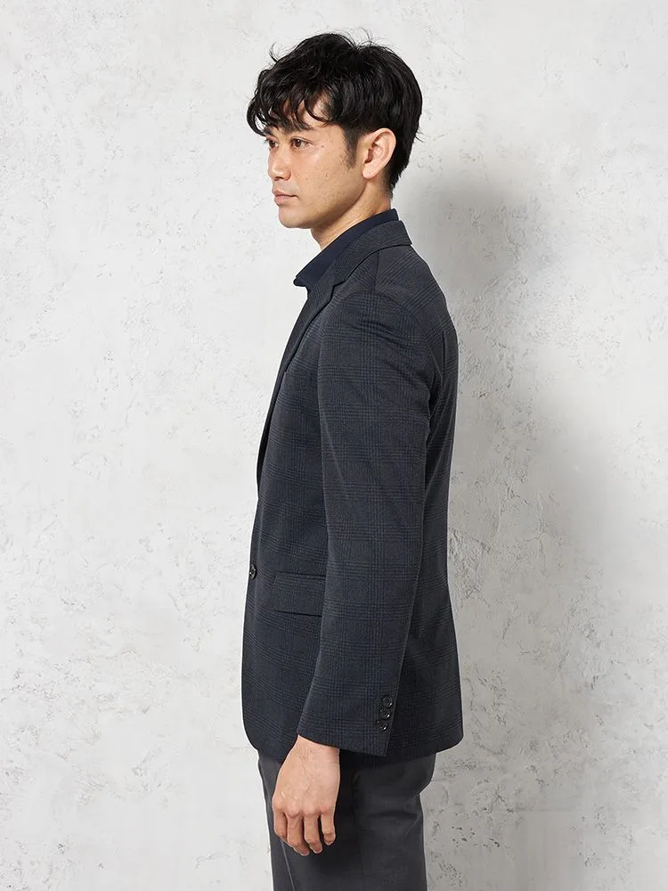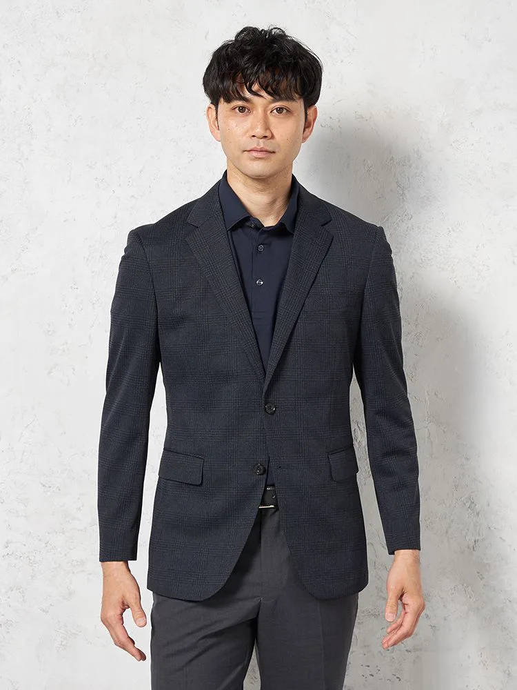 【ウォッシャブル】ジャケット2つボタン【i-Jacket-アイジャケット-】ストレッチ軽量イタリアンチェック柄ネイビー春夏